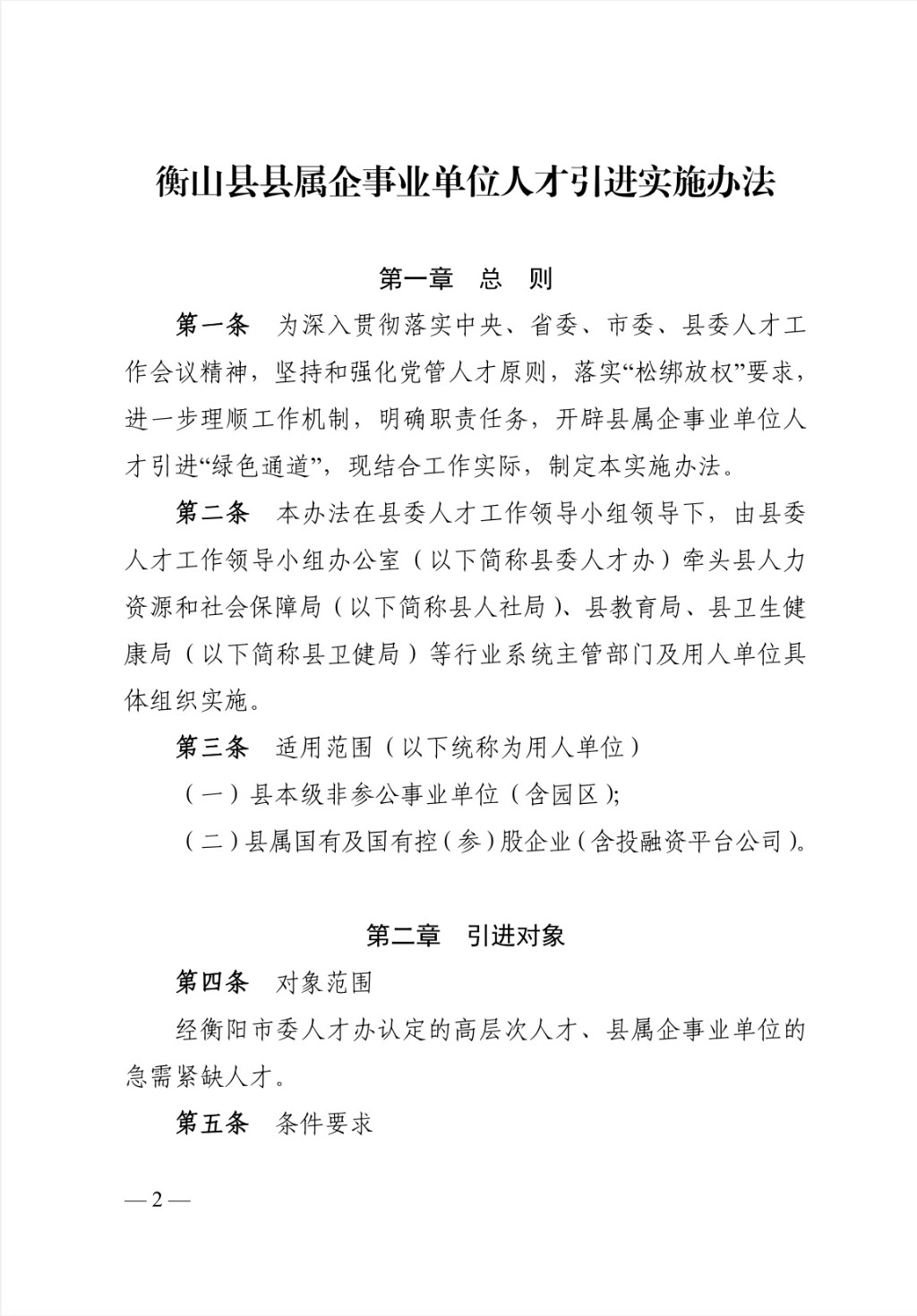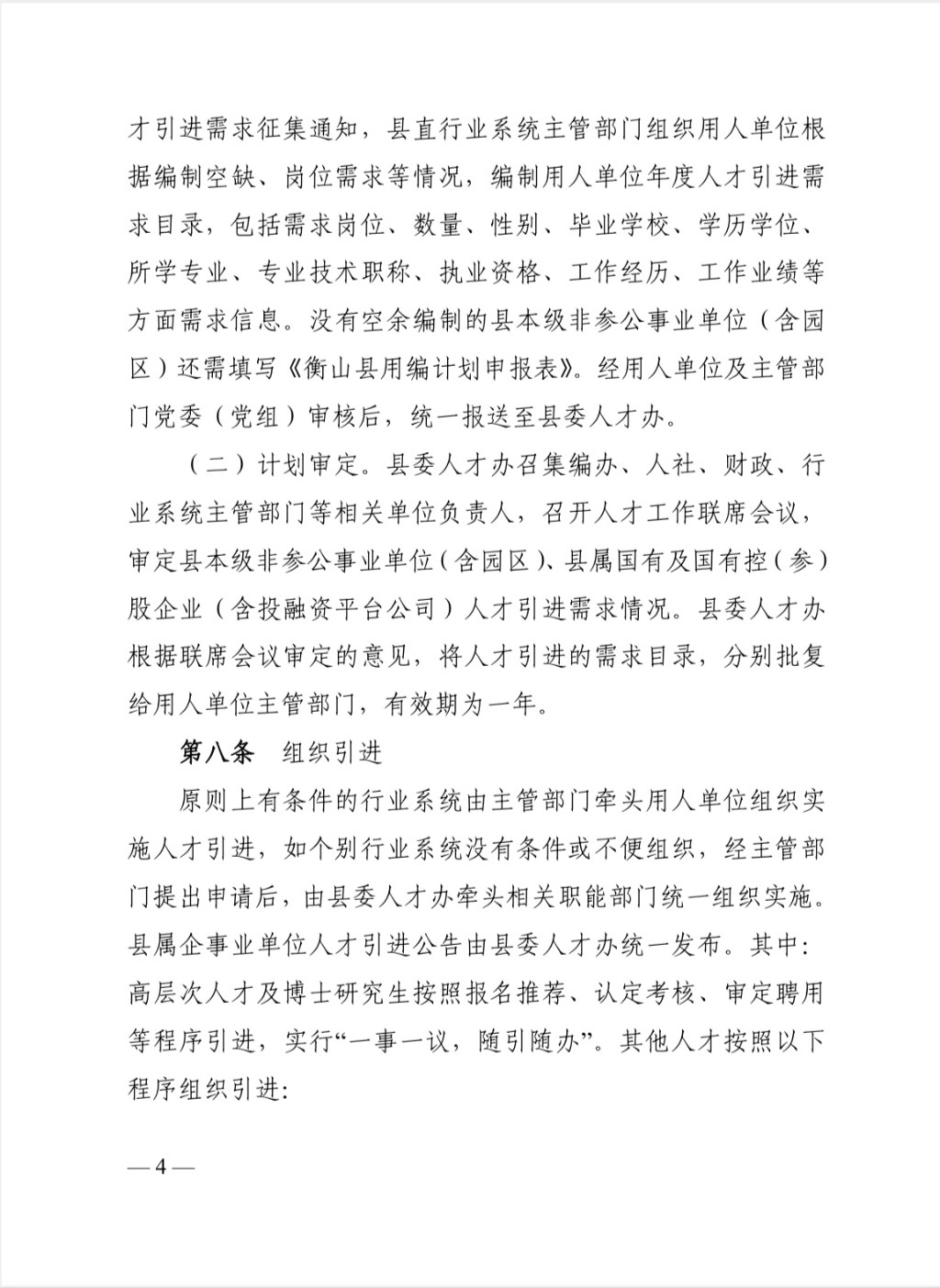 中共衡山縣委人才工作領導小組辦公室 印發《衡山縣縣屬企事業單位人才引進 實施辦法》的通知