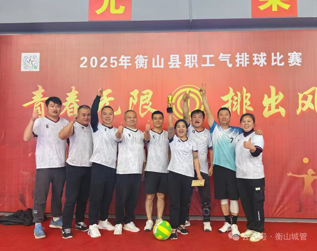 12月16日,衡山縣2025年職工氣排球賽賽事圓滿收官,全縣各機關、鄉鎮、企事業單位共50餘支代表隊同台競技。衡山縣城市管理和綜合執法局代表隊在這場自12月8日啟幕、曆經數日多輪激烈比拚的賽事中,憑借默契的團隊配合與出色的競技水平,一路披荊斬棘,再次成功奪得比賽一等獎。
