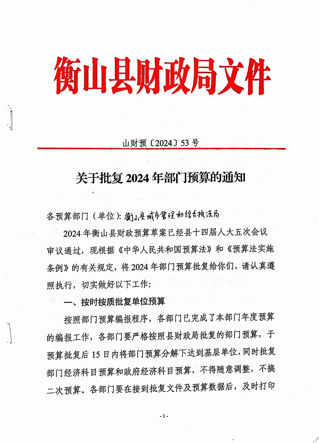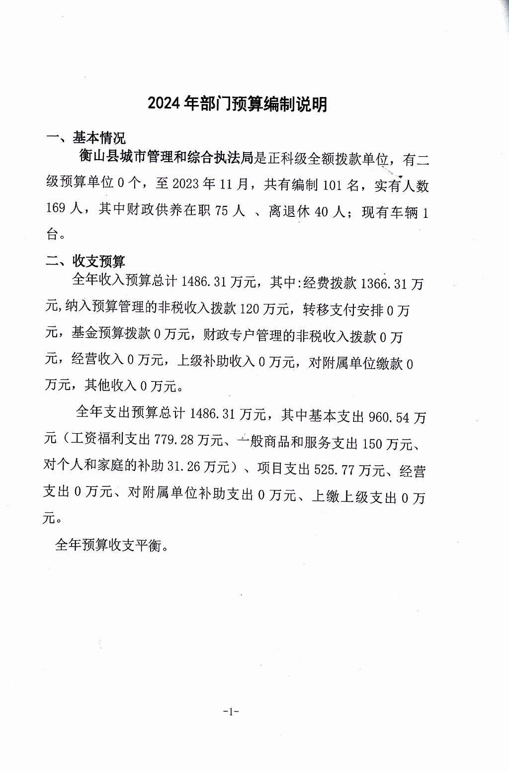 2024年衡山縣城市管理和綜合執法局部門預算編製說明