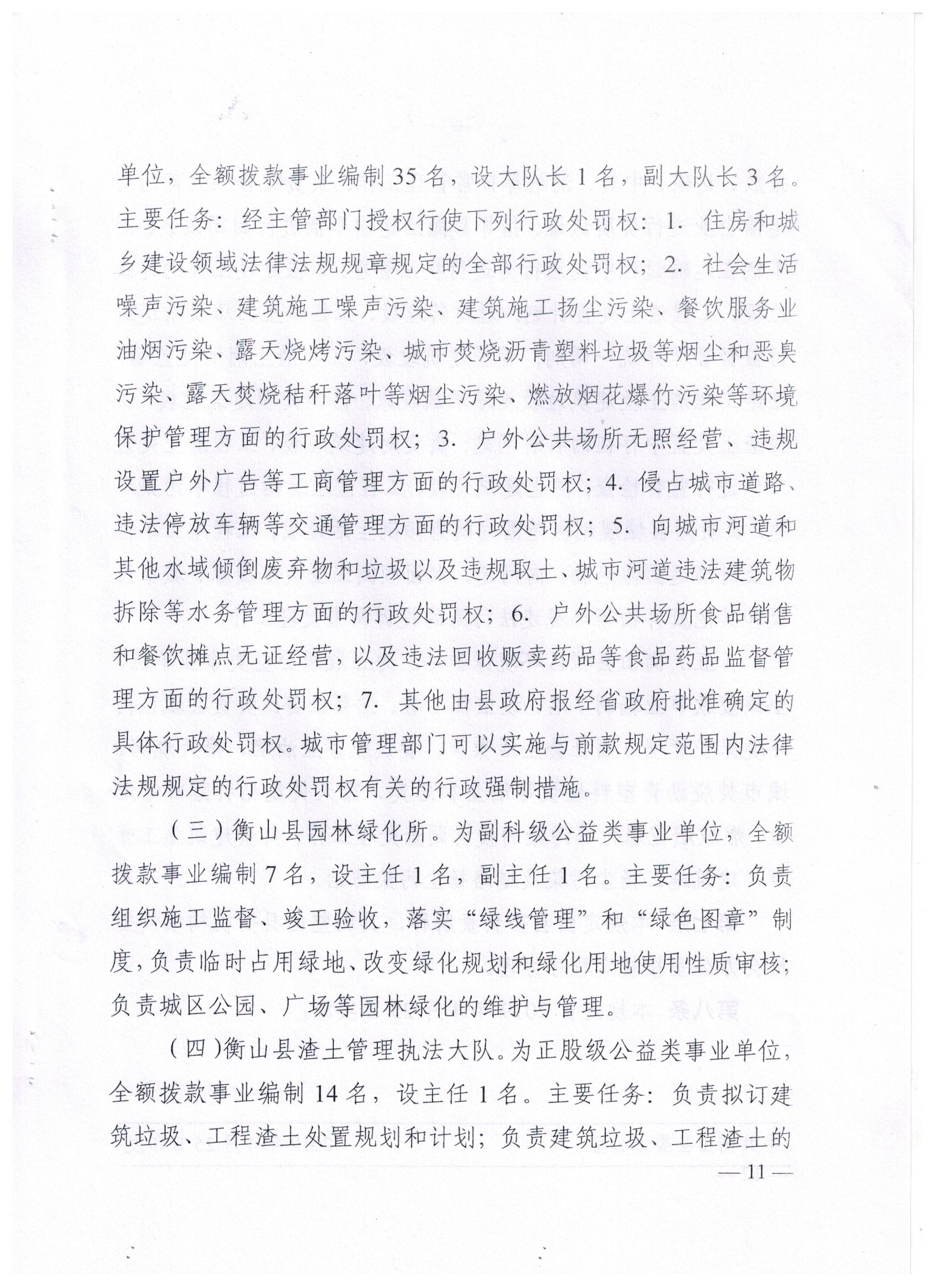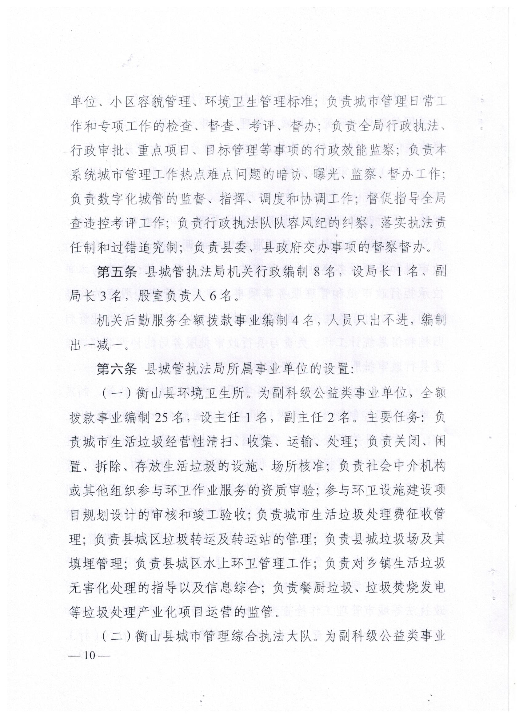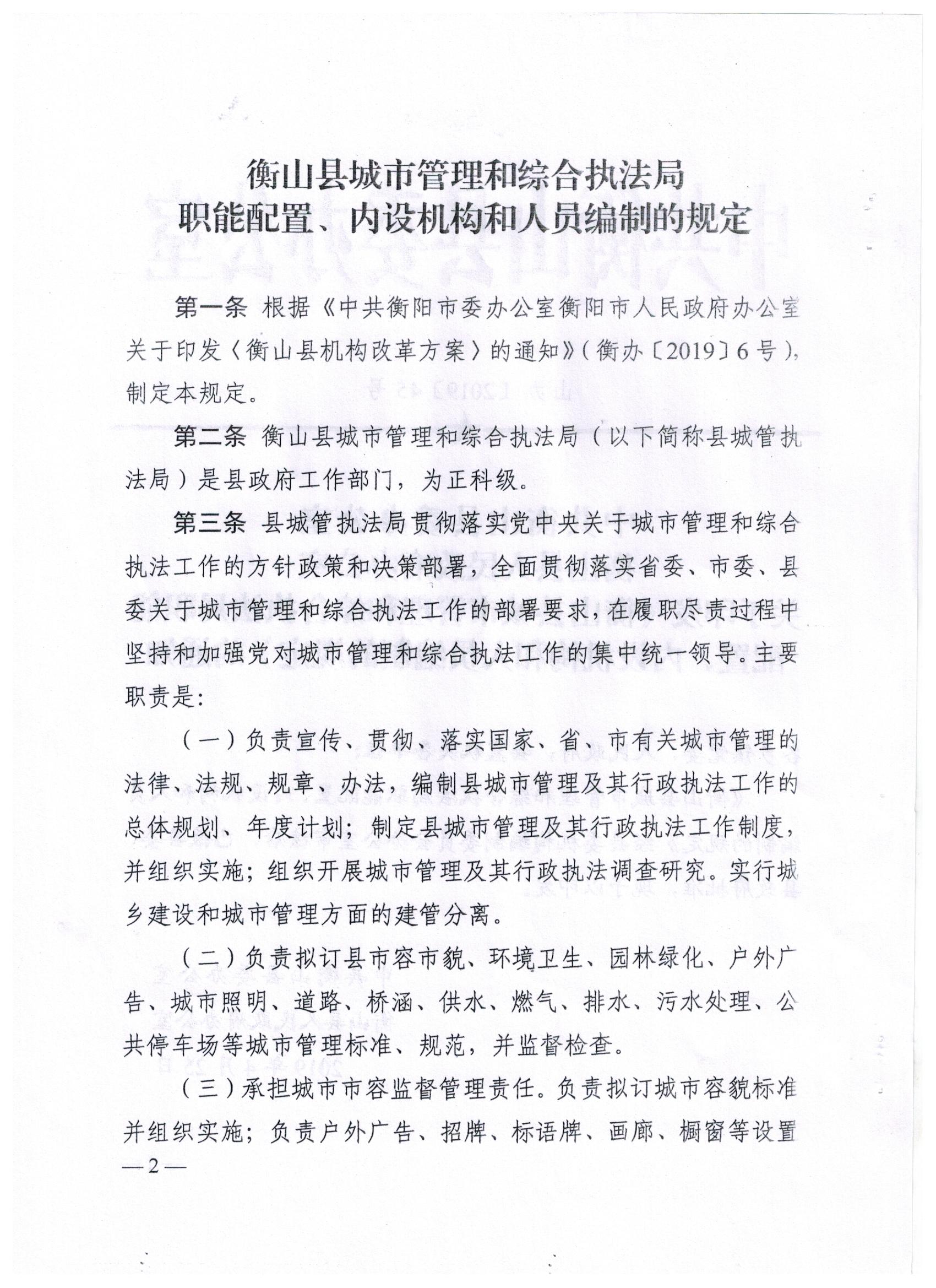 衡山縣城市管理和綜合執法局職能配置、內設機構和人員編製的規定