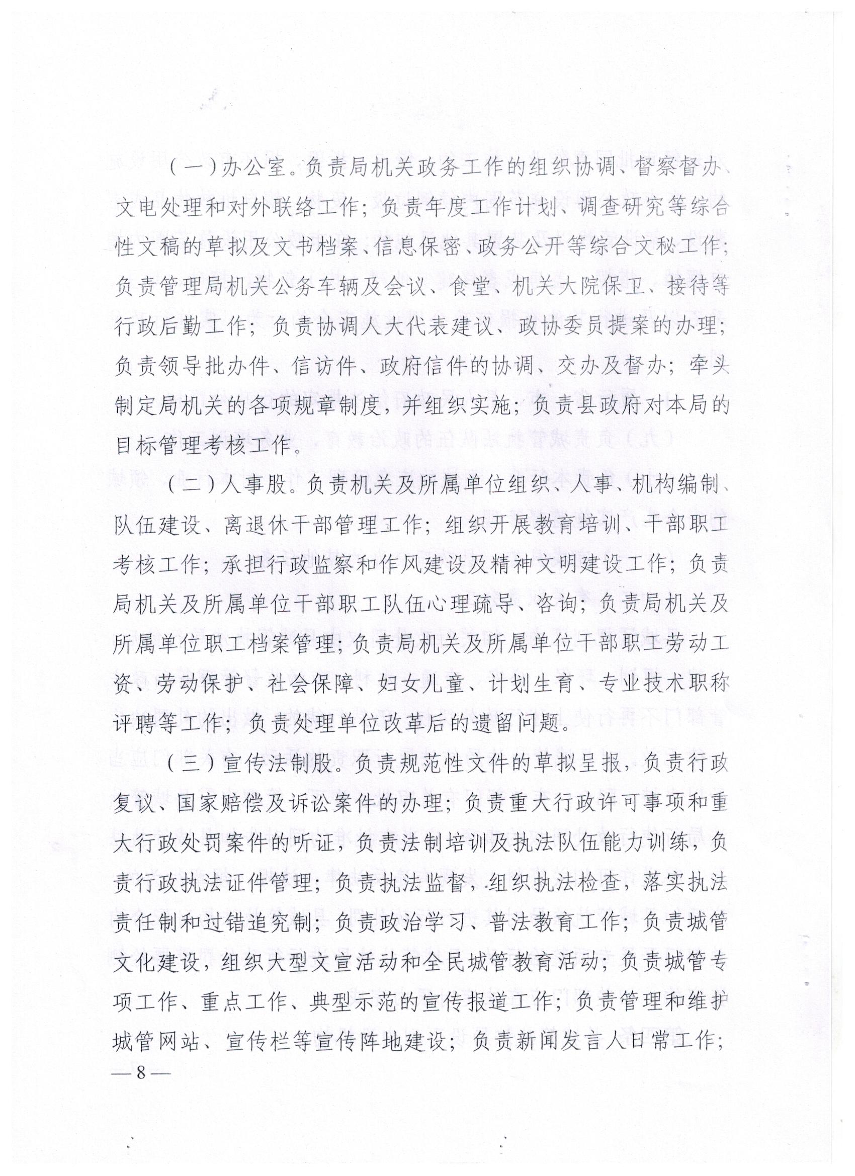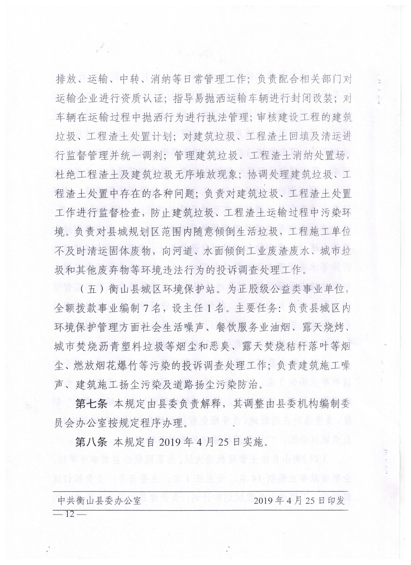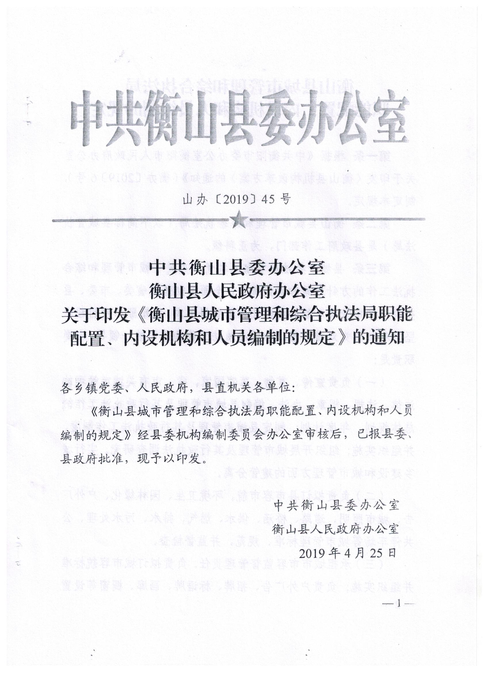 衡山縣城市管理和綜合執法局職能配置、內設機構和人員編製的規定
