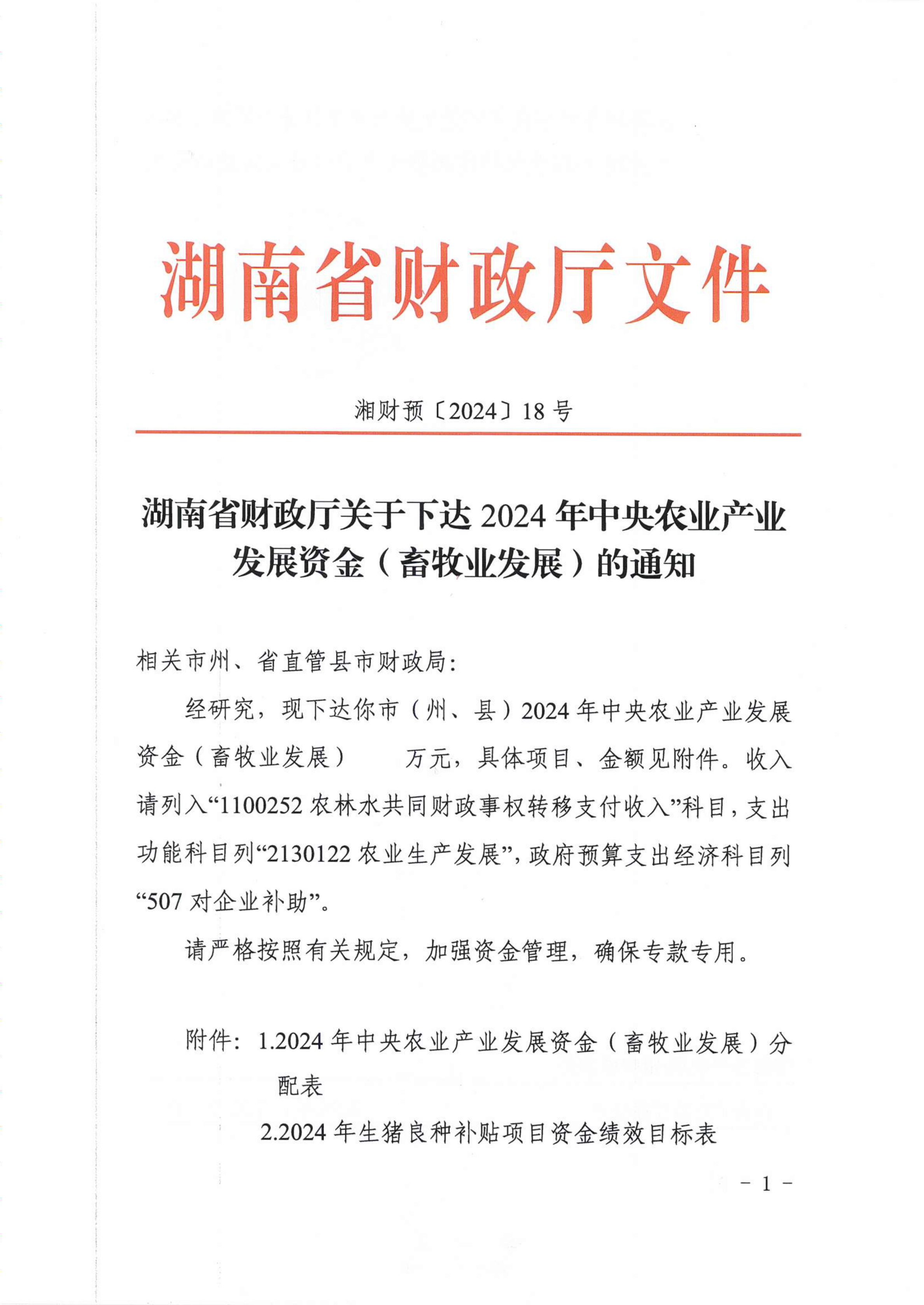 關於下達2024年中央農業產業發展資金(畜牧業發展)的通知