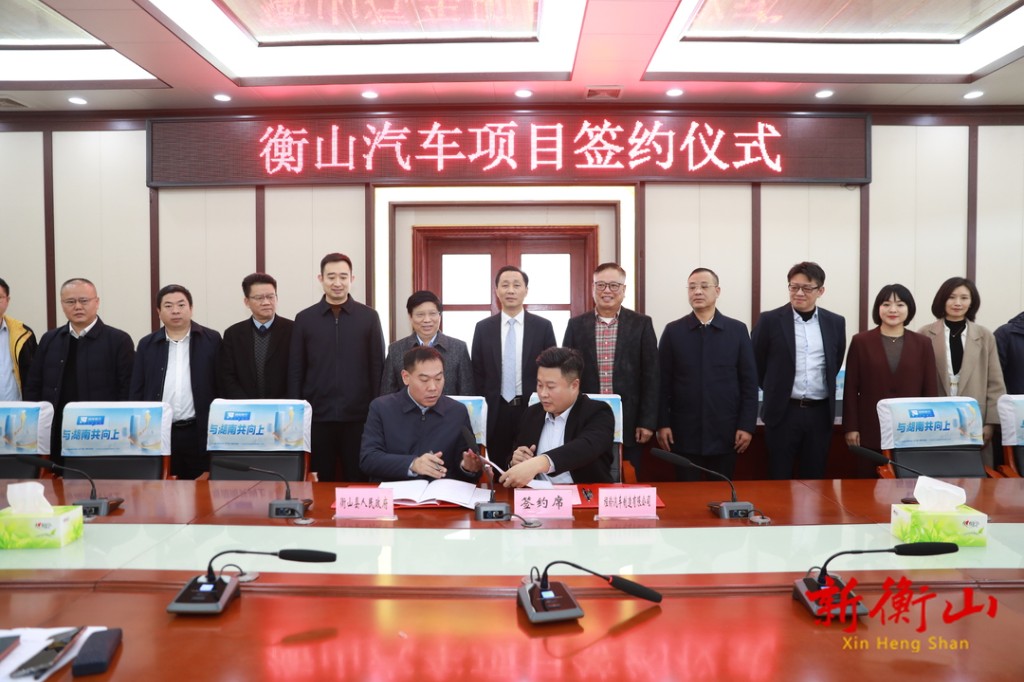 1月10日上午,衡山程鈴汽車項目簽約儀式在縣政府四樓會議室舉行。市政協副主席、衡山縣委書記戴新賢主持簽約儀式。縣委副書記、縣長段曉賽同程鈴汽車有限公司董事長楊超翔現場簽約。