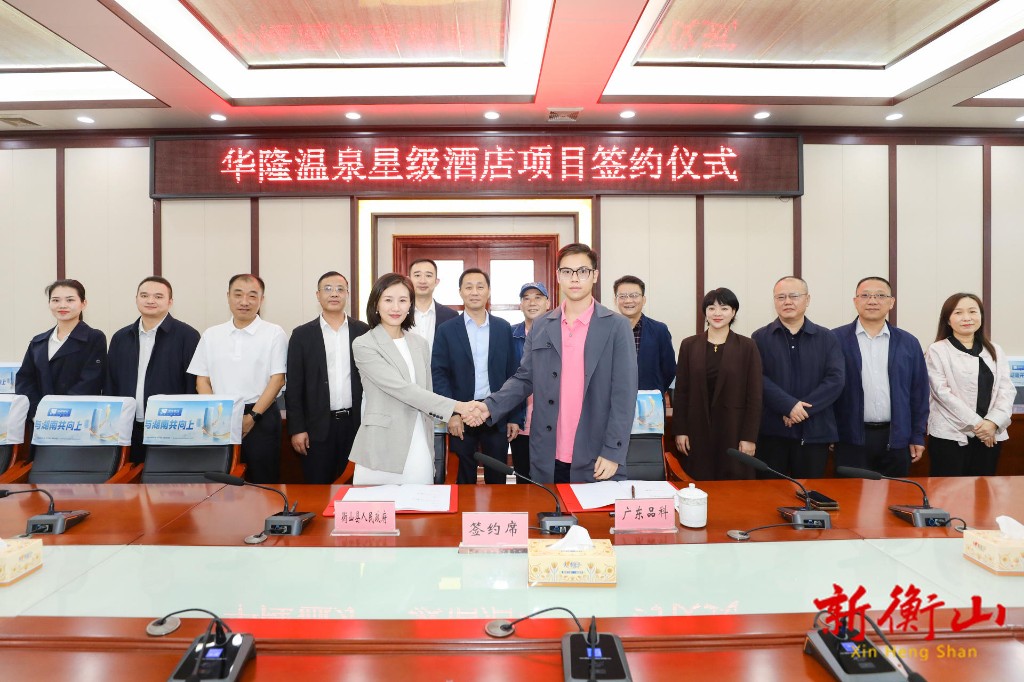 9月26日,華隆溫泉星級酒店項目簽約儀式在縣政府四樓會議室舉行。衡陽市政協副主席、衡山縣委書記戴新賢出席簽約儀式並講話,縣委副書記謝斌主持簽約儀式。廣東品科投資控股有限公司董事長劉新華、總經理劉嘉豪出席會議。
