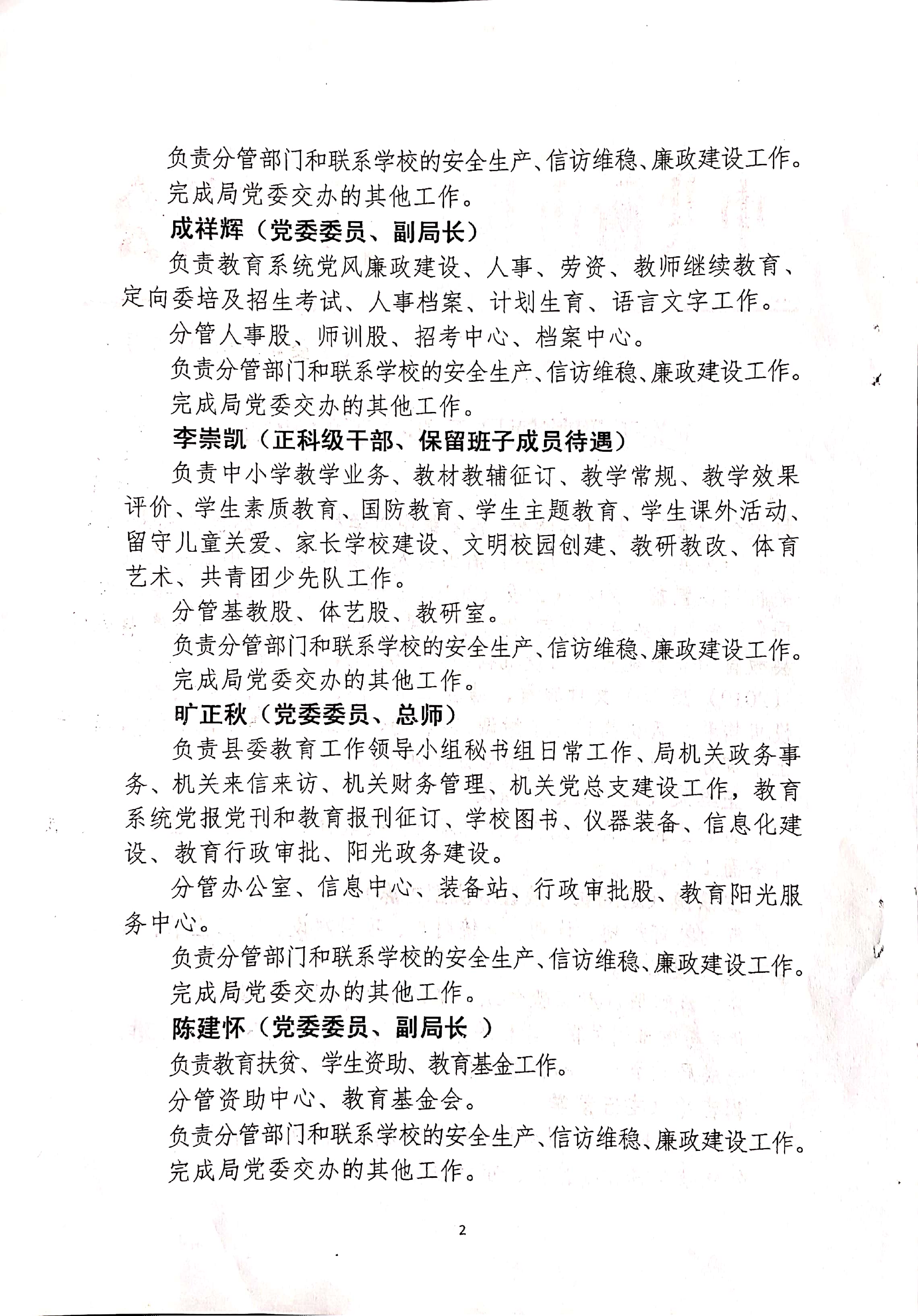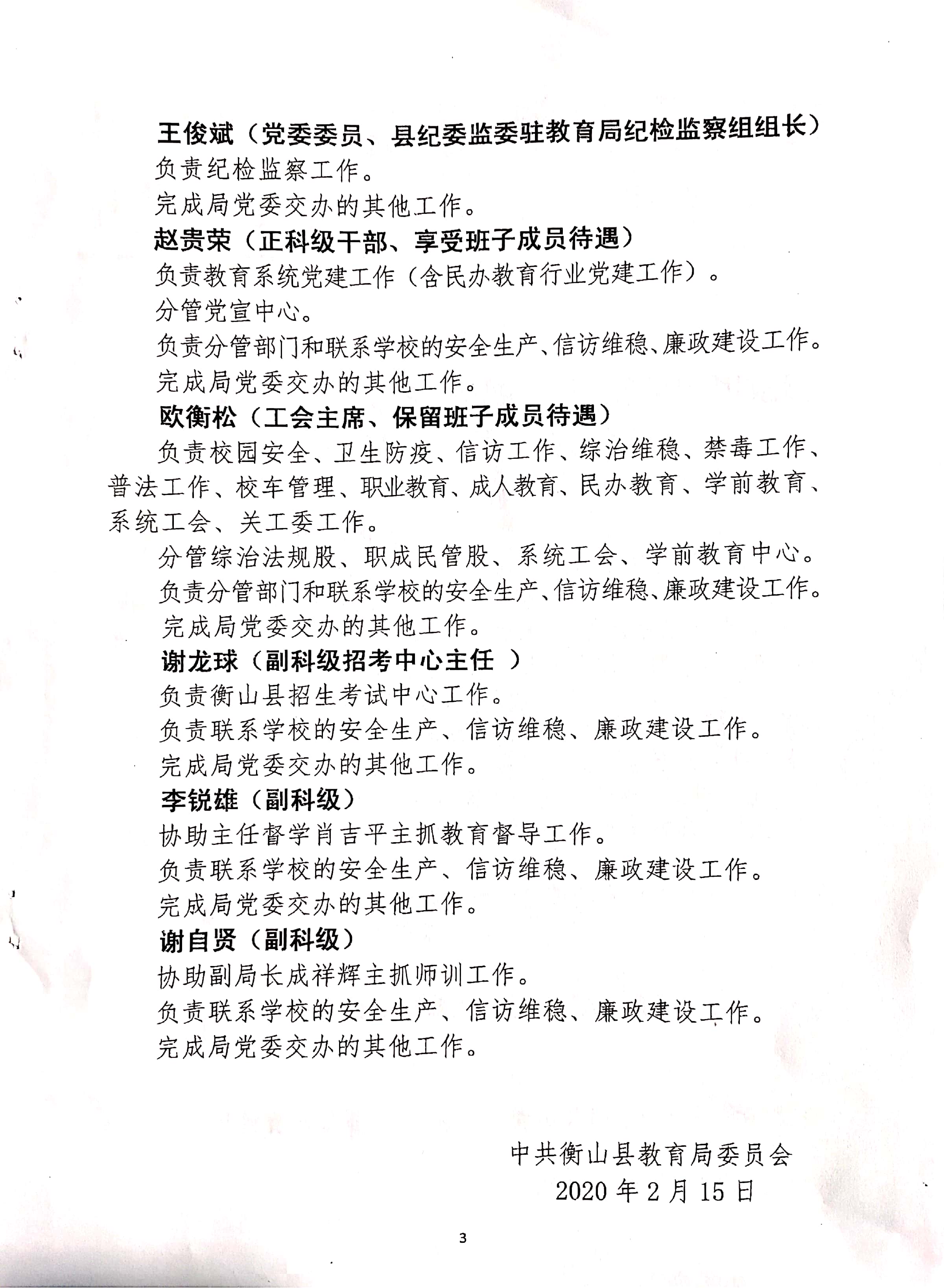 山教委通 關於調整領導幹部分工的通知