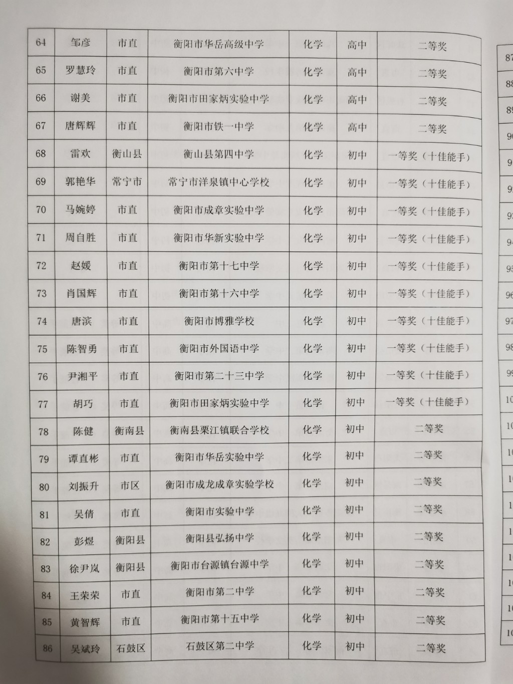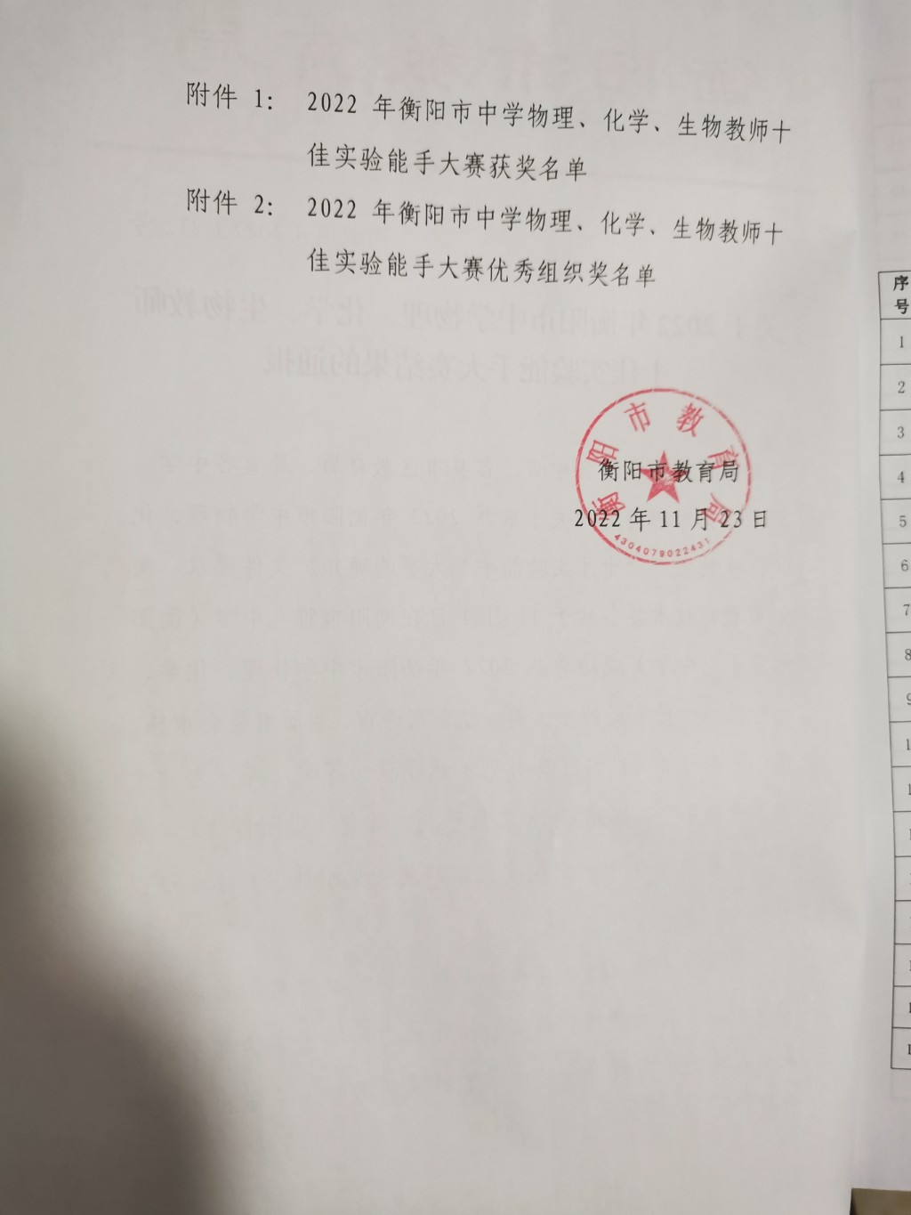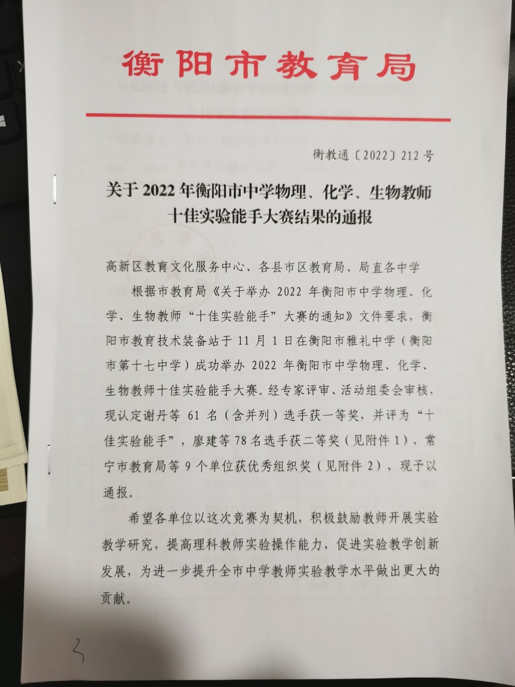 關於2022年衡陽市中學物理、化學、生物教師十佳實驗能手大賽結果的通報