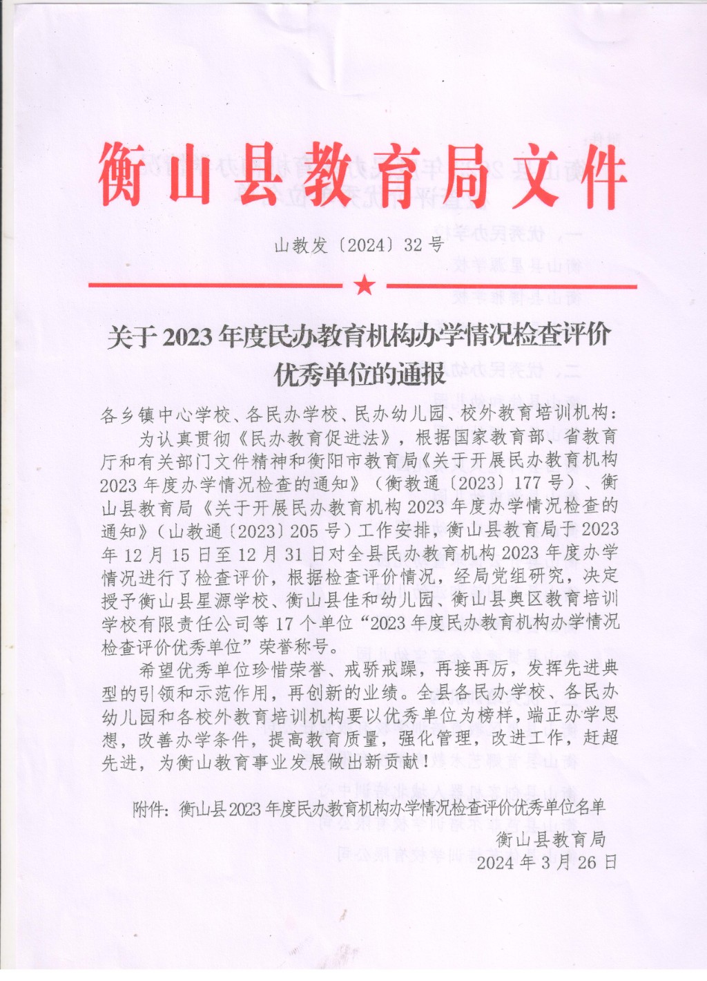 關於2023年度民辦教育機構辦學情況檢查評價優秀單位的通報