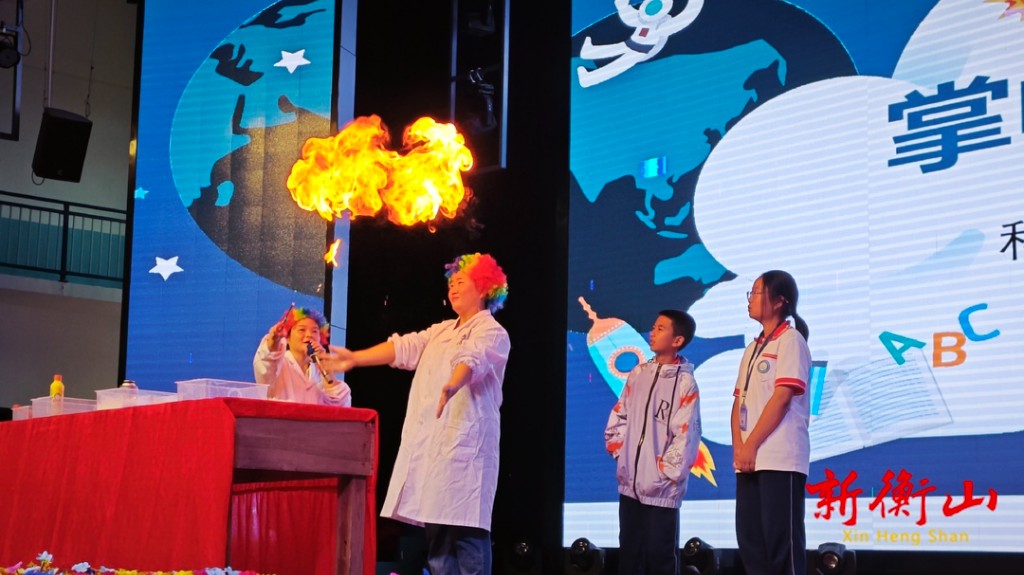 接下來,湖南科迪爾教育集團的兩位老師通過“掌中火焰”“幹冰秀”2個科學實驗表演將活動推向高潮,全場掌聲熱烈。同學們熱情高漲,紛紛舉手參加實驗,近距離地感受科技、學習科技、觸摸科技。
