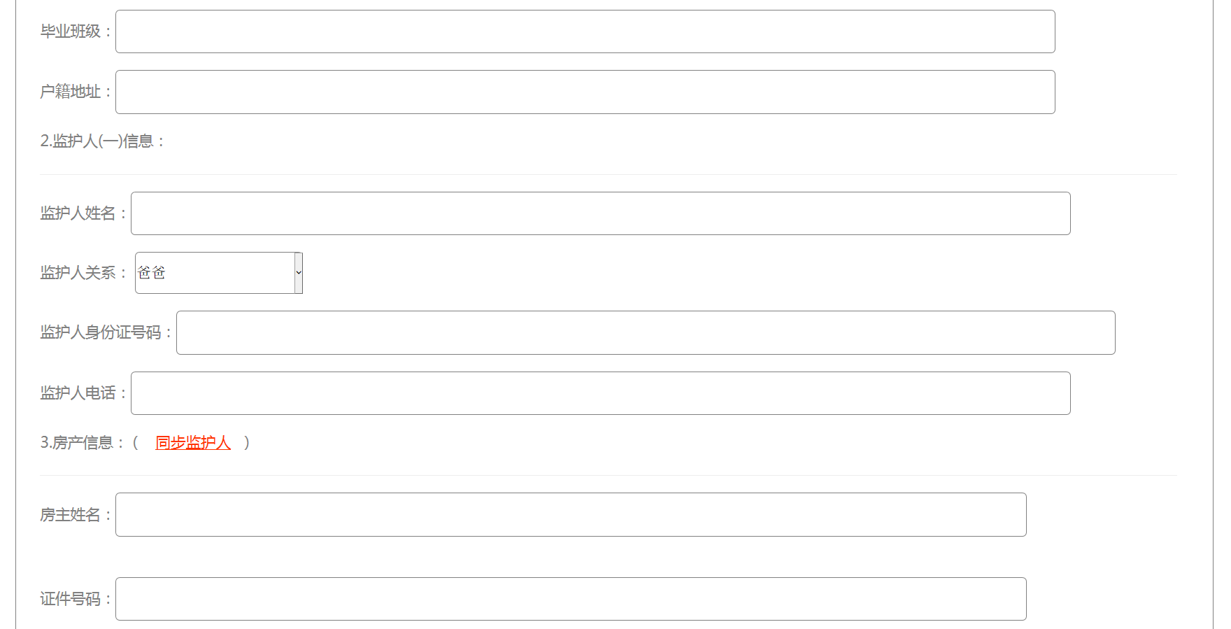 填寫學生監護人信息、房產信息等入學資質信息。