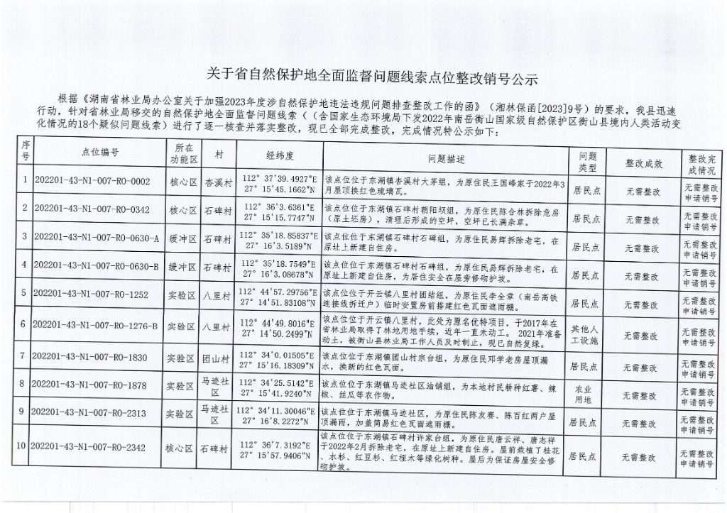 關於省自然保護地全麵監督問題線索點位整改銷號公示