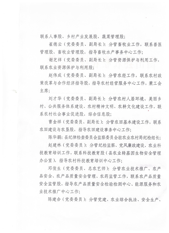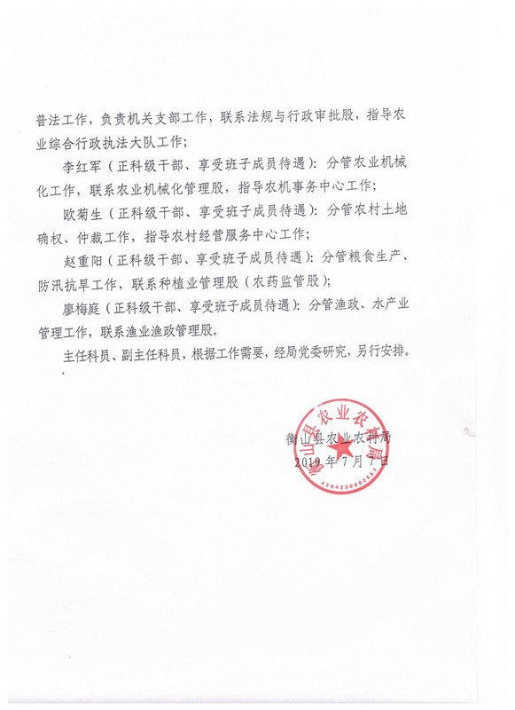 衡山縣農業農村局關於2019年領導班子成員工作分工的通知