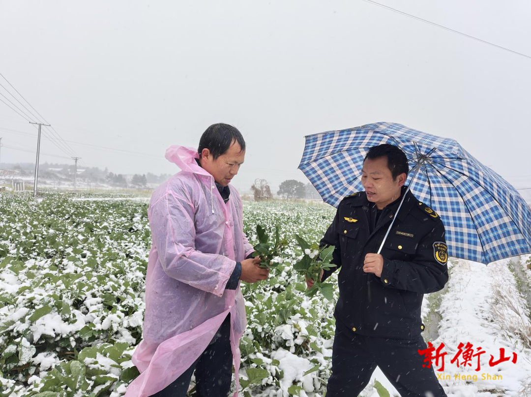 1月21日晚,衡山縣迎來2024年首場降雪。為減少低溫雨雪天氣對農業生產帶來的不利影響,衡山縣農業農村局組織農技專家到田間地頭,現場指導農戶做好防寒防凍工作。