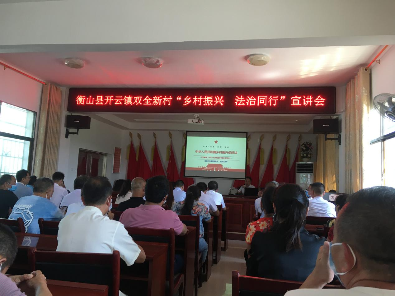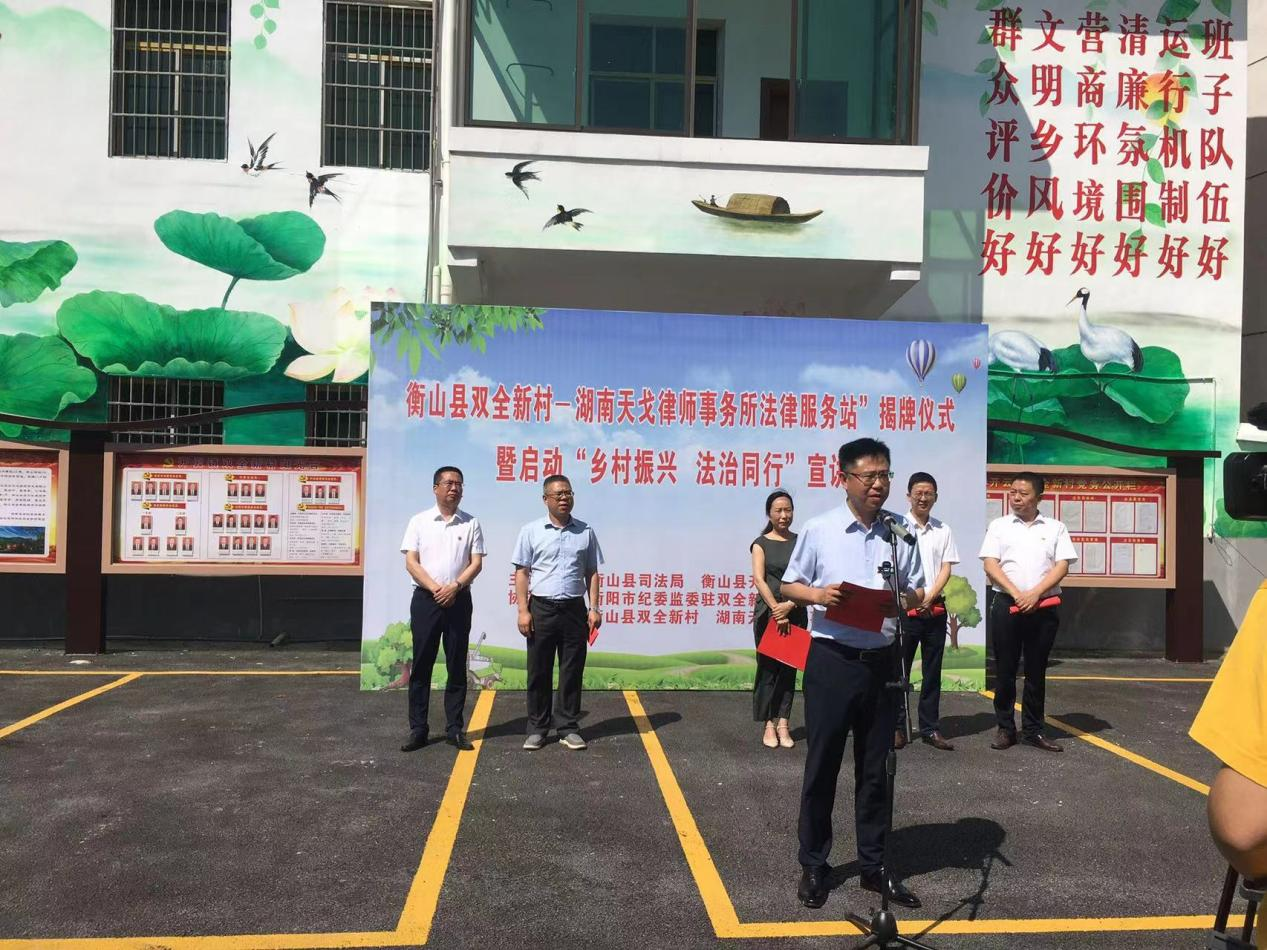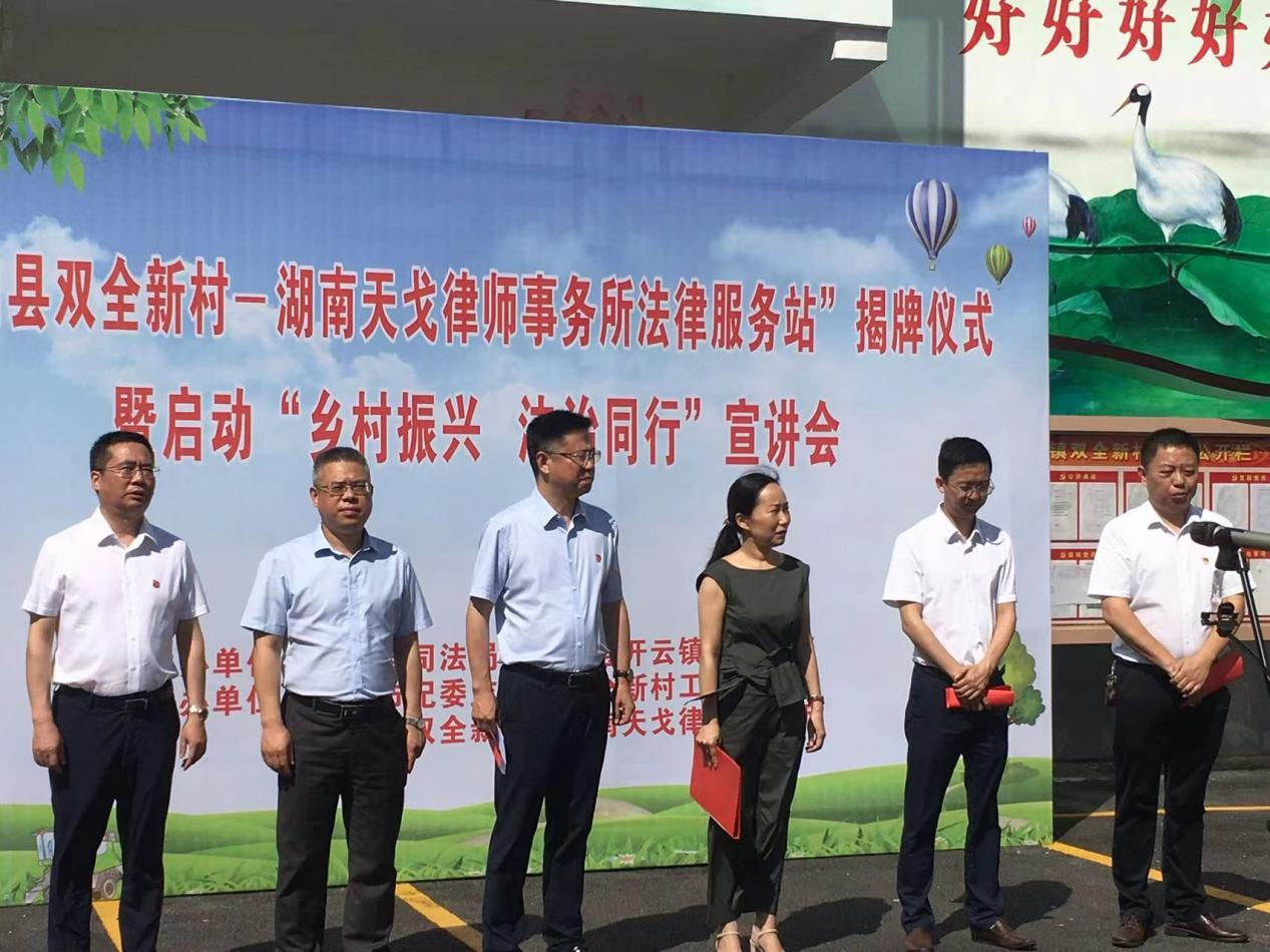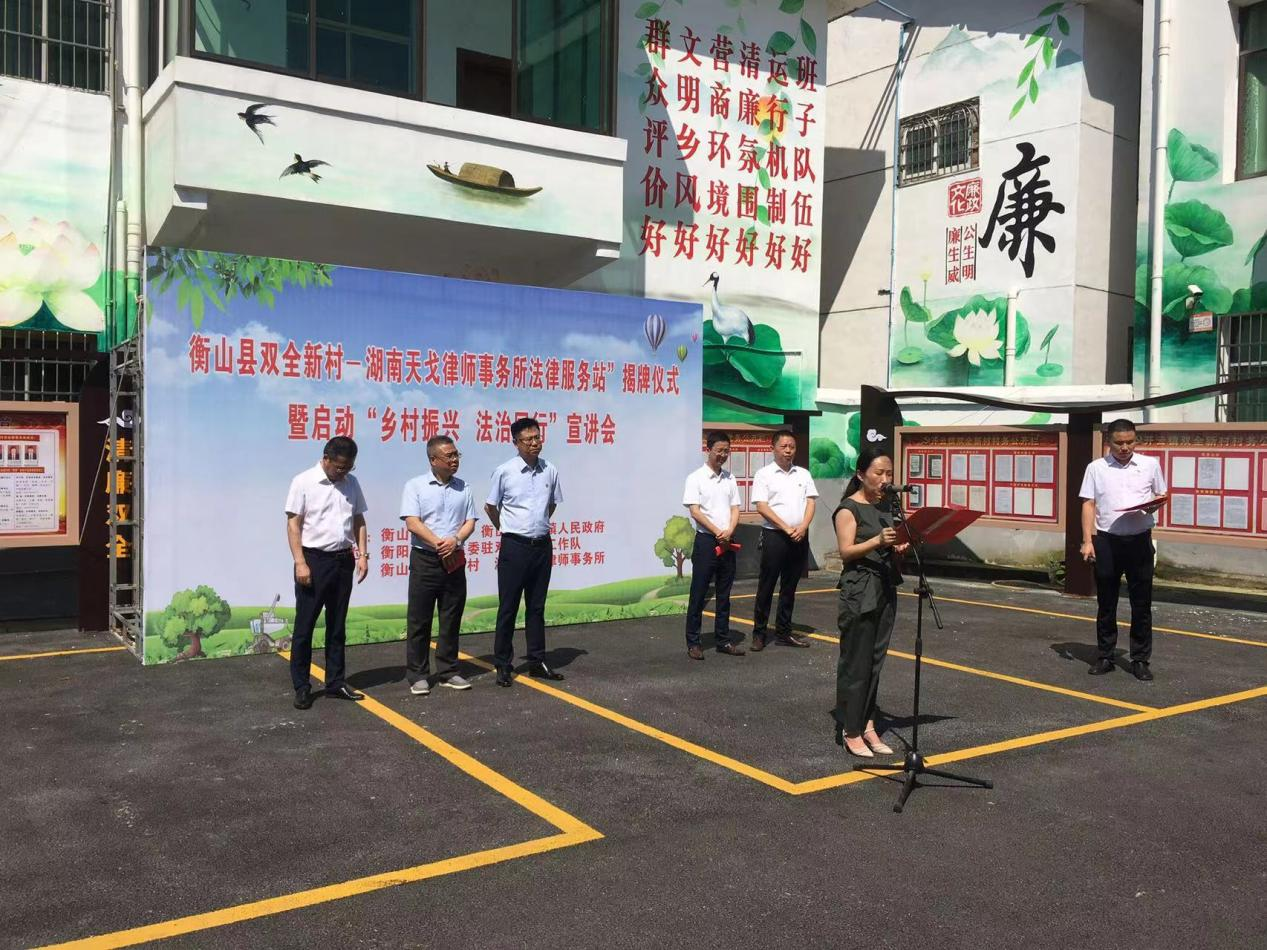 (通訊員:呂素珍)6月25日,在國家級“民主法治示範村”衡山縣開雲鎮雙全新村,舉行了“衡山縣雙全新村—湖南天戈律師事務所法律服務站”揭牌儀式暨啟動“鄉村振興 法治同行”宣講會。