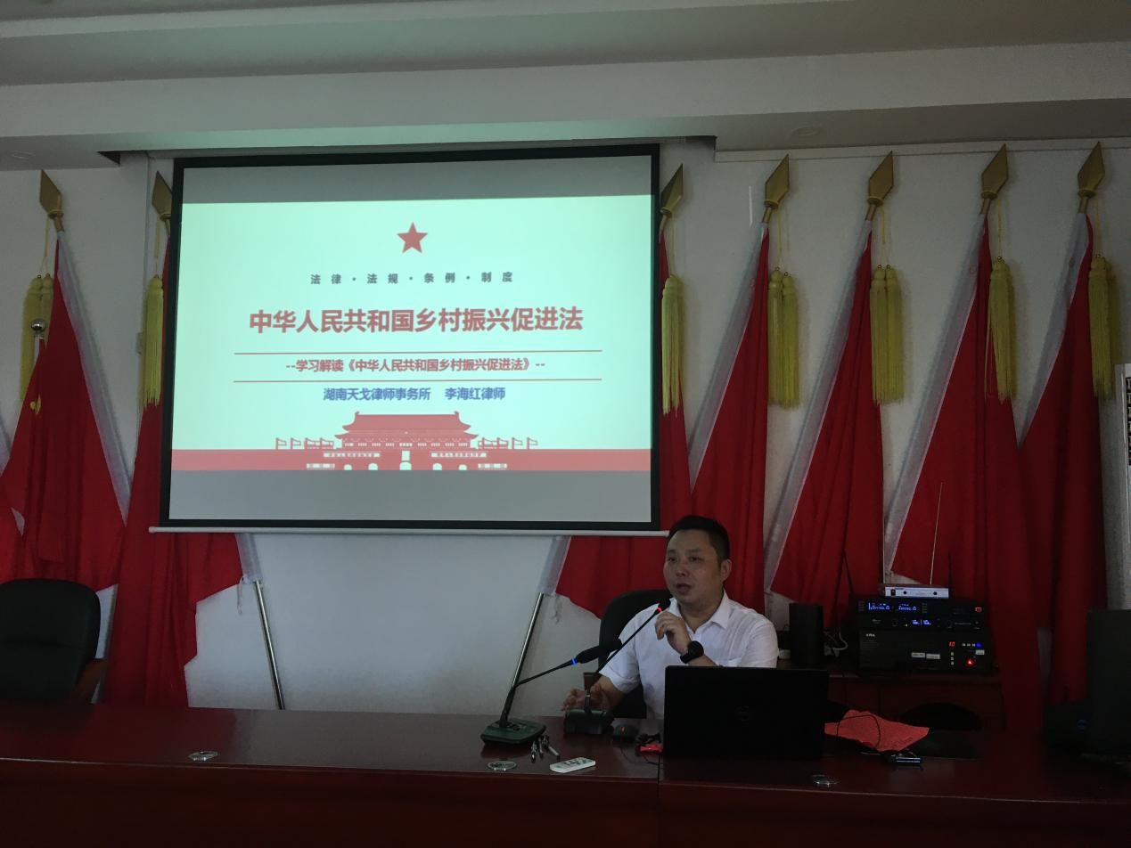 最後,湖南天戈律師事務所律師李海紅向廣大村民詳細解讀了《中華人民共和國鄉村振興促進法》,為村民們帶來了一場精彩的普法教育課。