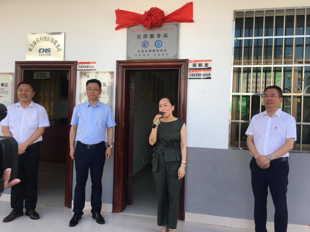 衡山縣政協副主席、縣司法局局長周湘寧與衡陽市律師協會會長、湖南天戈律師事務所主任蔡熙中,衡山縣開雲鎮黨委書記朱學鋒共同為“衡山縣雙全新村-湖南天戈律師事務所法律服務站”揭牌;