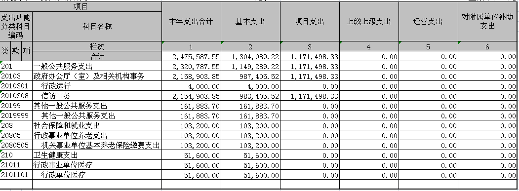 30110 | 職工基本醫療保險繳費 | 6.56 | 30208 | 取暖費 | 0 | 31006 | 大型修繕 | 0.00 |