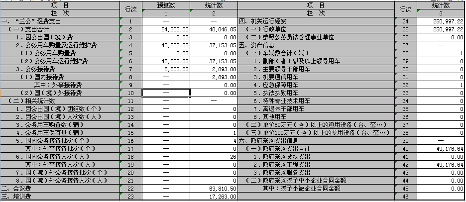 30301 | 離休費 | 0 | 30216 | 培訓費 | 0 | 31013 | 公務用車購置 | 0.00 |