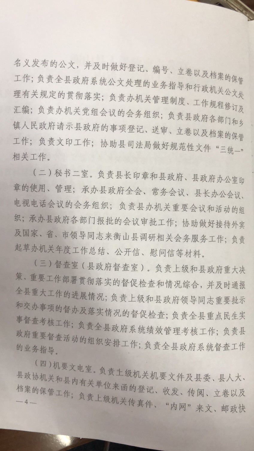 關於印發《衡山縣人民政府辦公室職能配置、內設機構和人員編製規定》的通知
