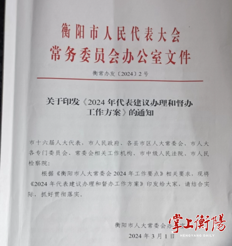 ▲衡陽市人大常委會《2024年代表建議辦理和督辦工作方案》