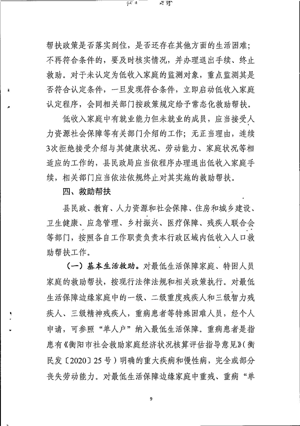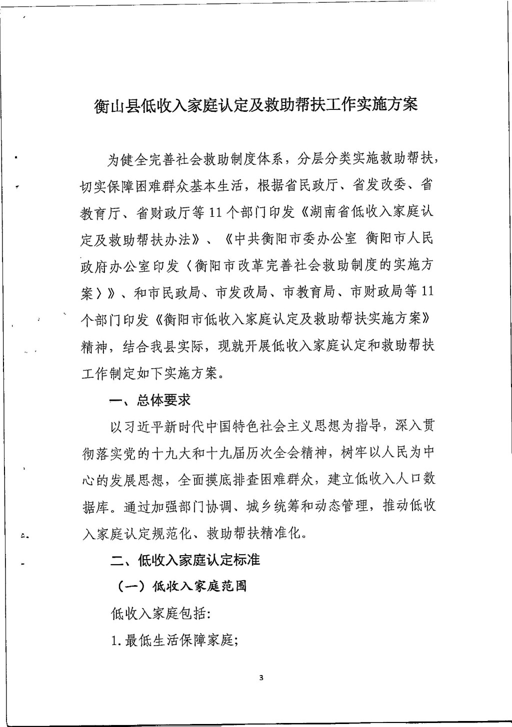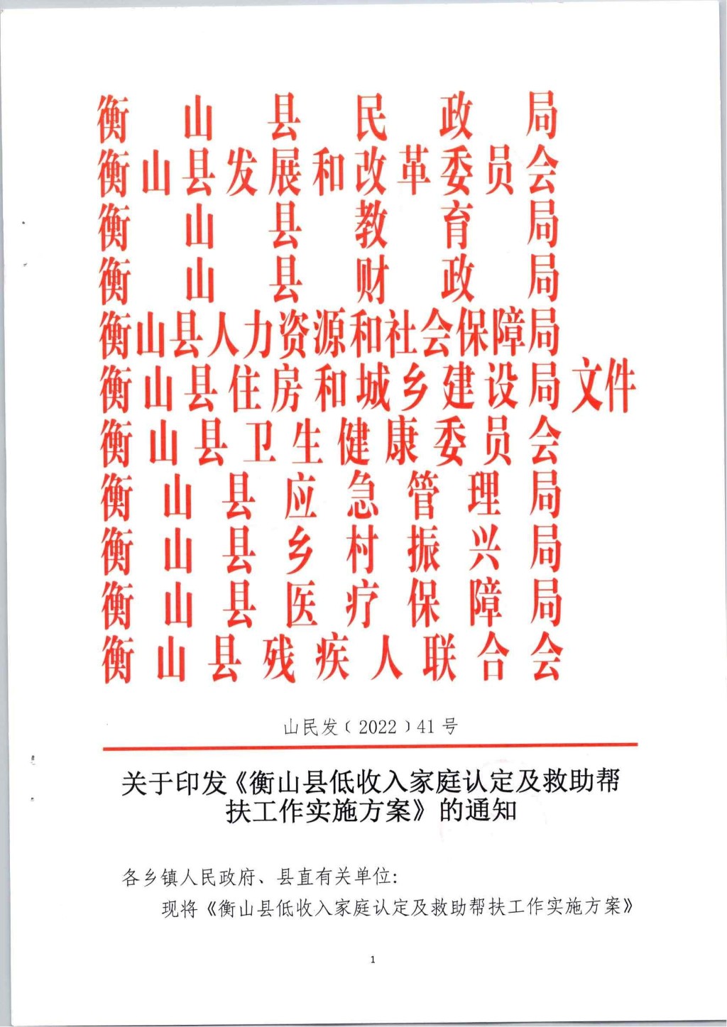關於印發《衡山縣低收入家庭認定及救助幫扶工作實施方案》