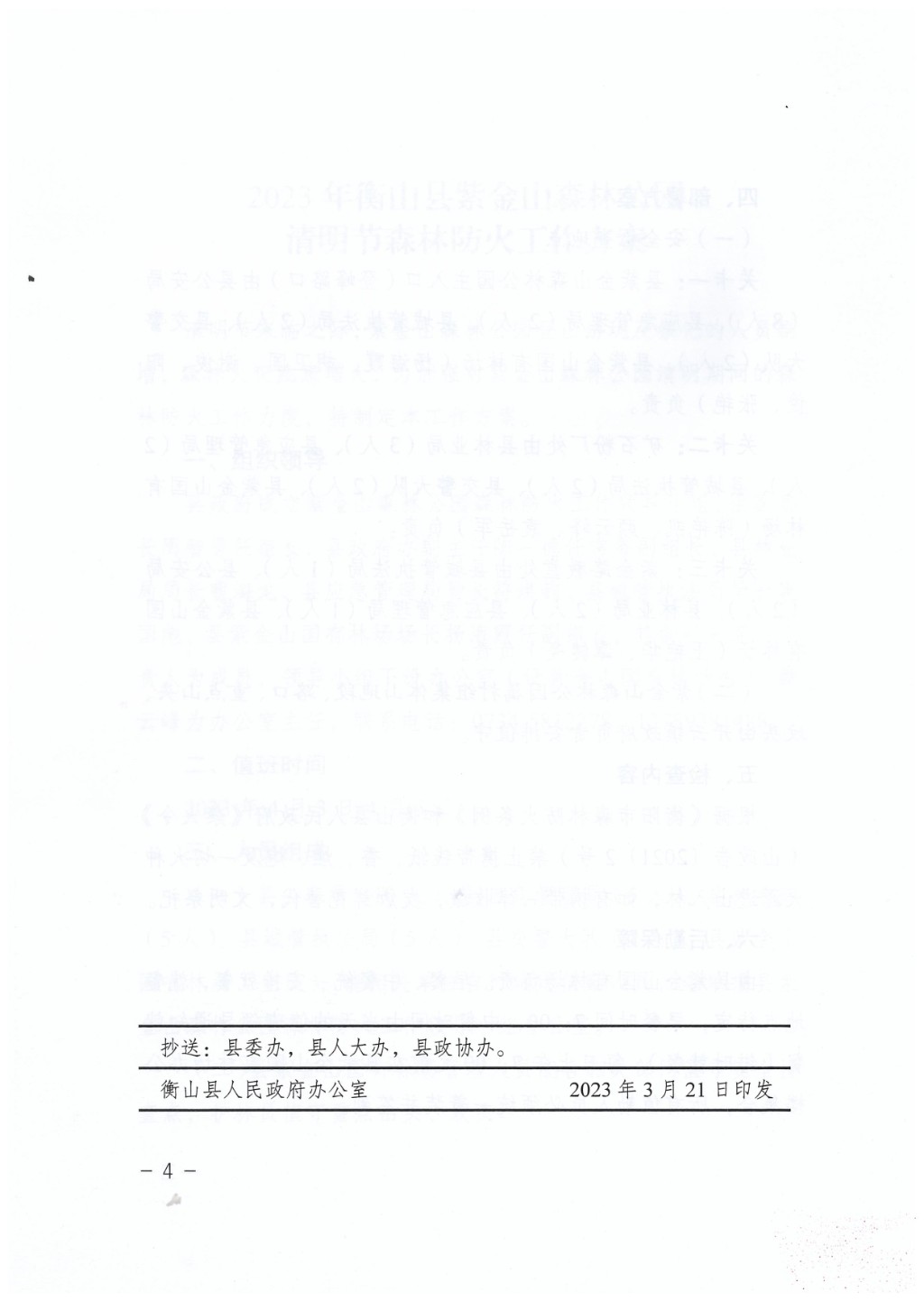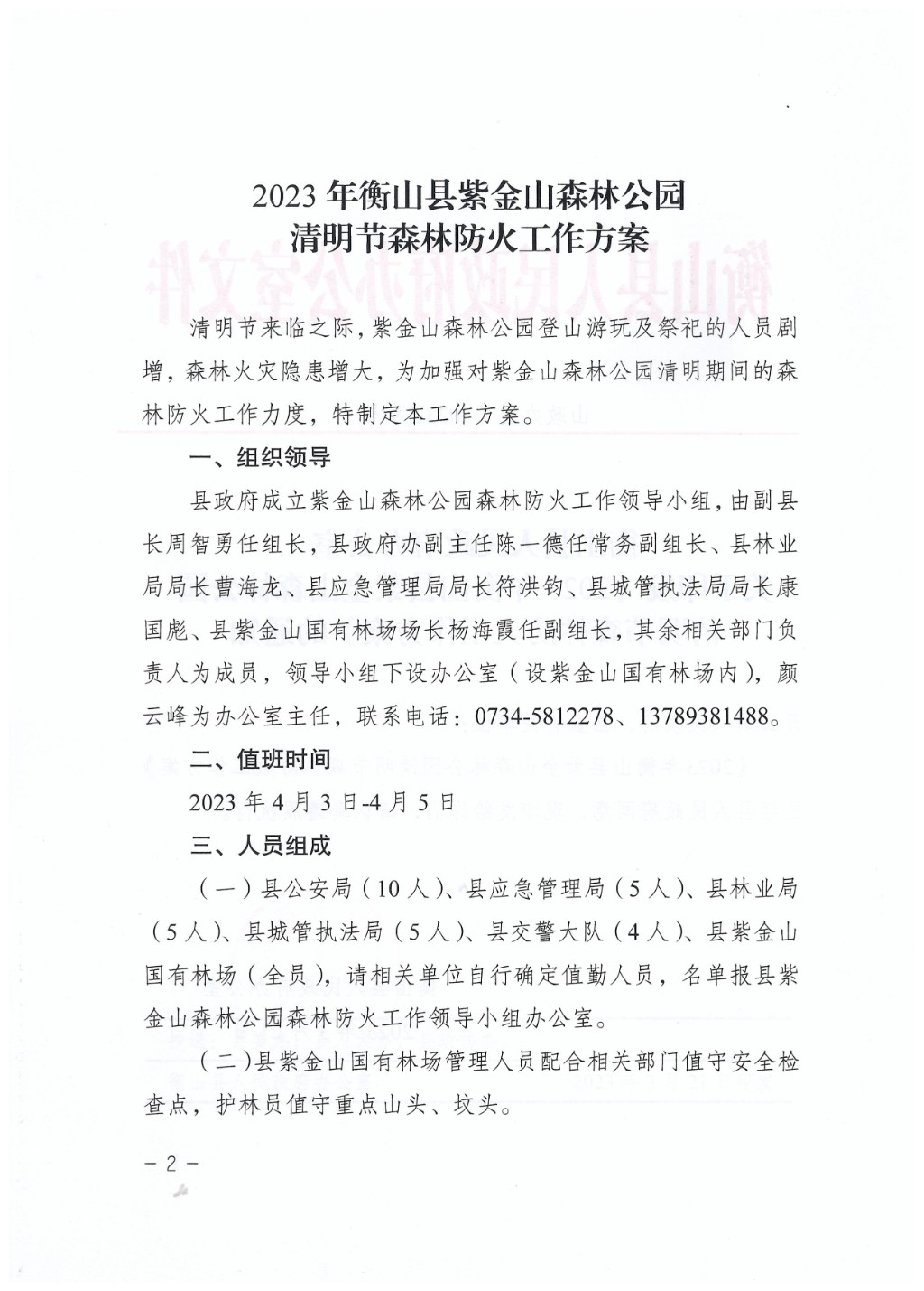 關於印發《2023年衡山縣紫金山森林公園清明節森林防火工作方案》的通知