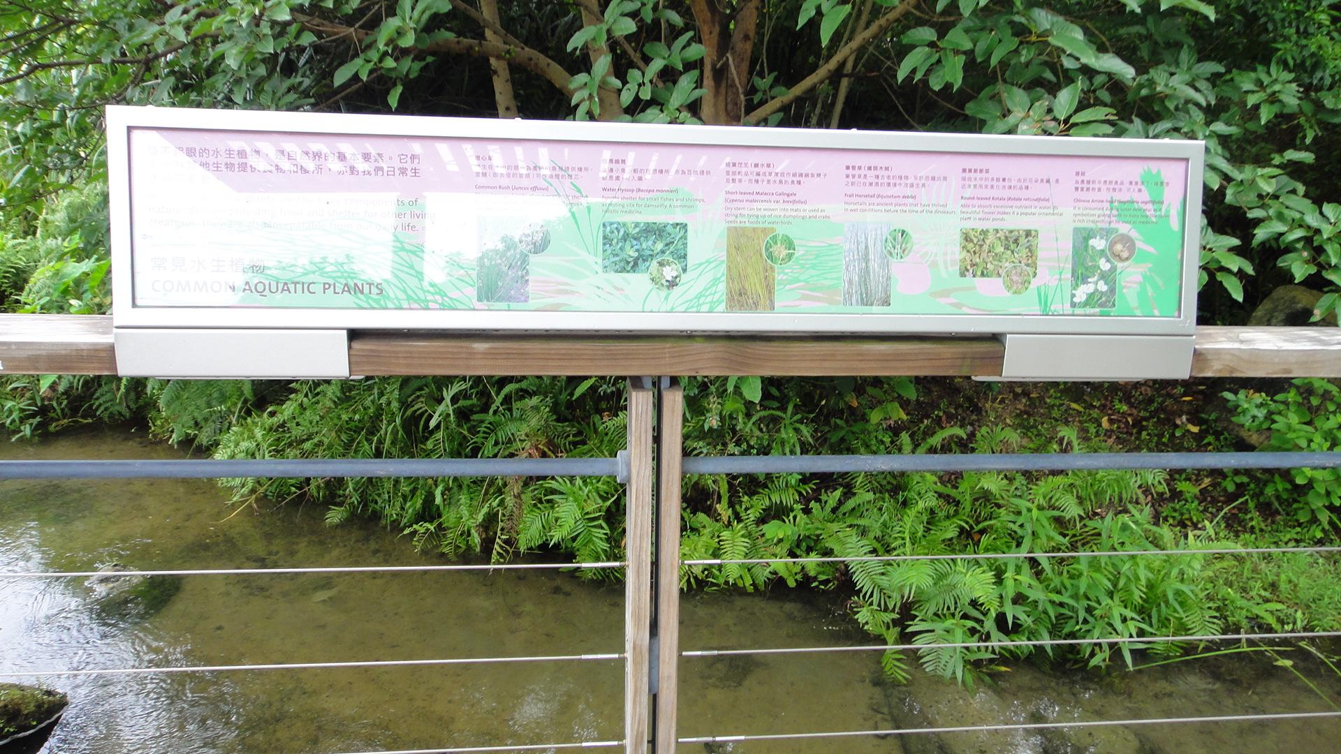 為了便於濕地公園作業人員在棧道內開展科研觀測活動,同時保證遊客的安全,在各節點按照國家頒布的GB10001標準(公共信息標誌用符號標準)新建或完善各種公共信息標誌(識)物。在棧道護欄上預留孔洞設置濕地知識解說牌、鳥類知識科普牌、遊覽圖等,結合平麵圖等介紹濕地公園情況;在棧道及休息棧台節點處設置路線標識牌和說明牌;在臨近水體處設置標示警示牌,在坎、坡等處均設警示牌。