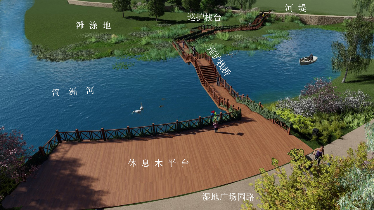 創造濕地科普教育機會:所選建設地水麵寬闊,可以通過巡護棧道、棧橋、休息棧台等多功能組合,創造連通萱洲河水體的生境通道,為棲息地恢複和保護創造機會,為人們提供科普教育和科研場所,為遊客、周邊村民及今後古鎮新區的居民通行提供了便利。