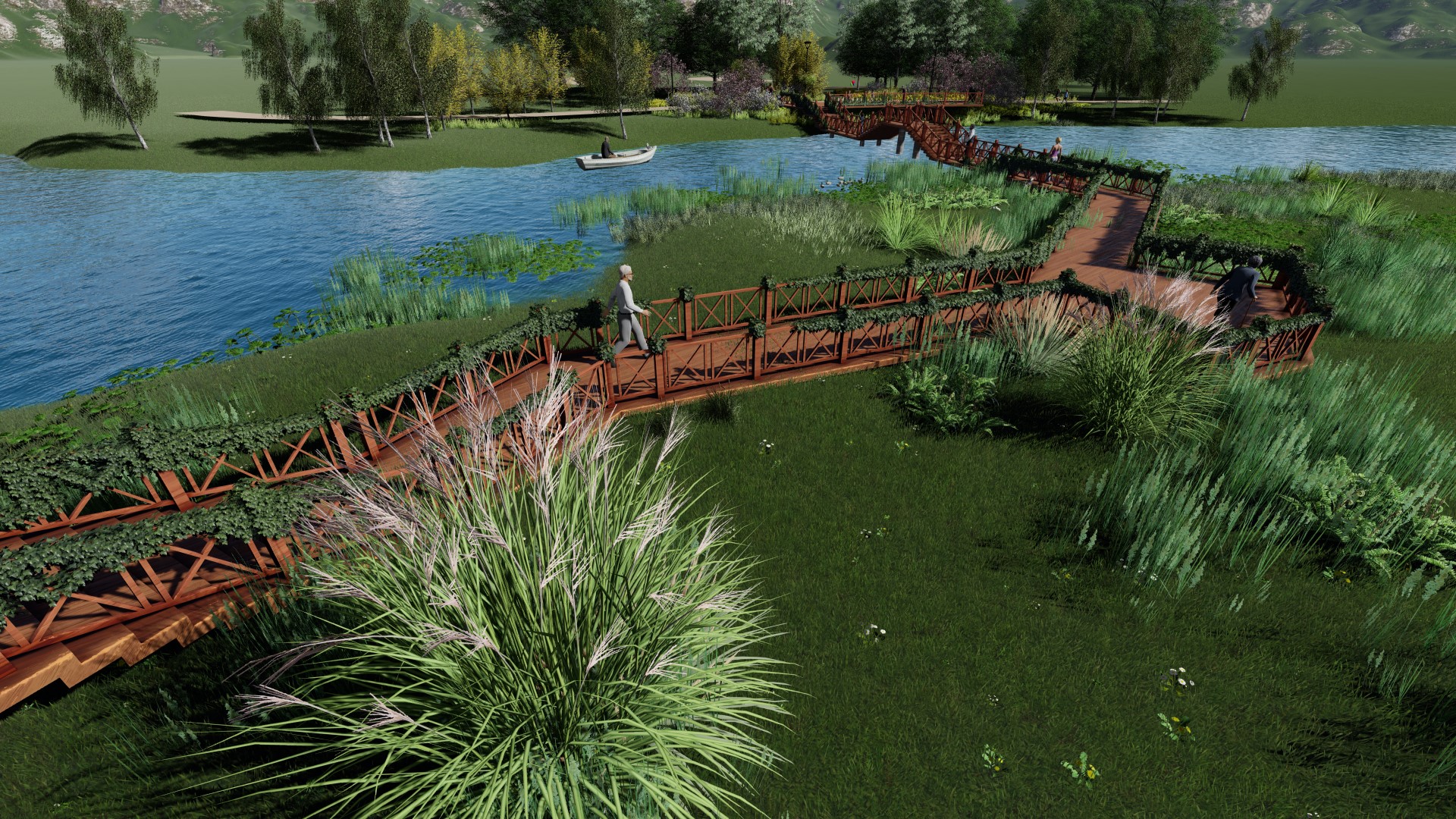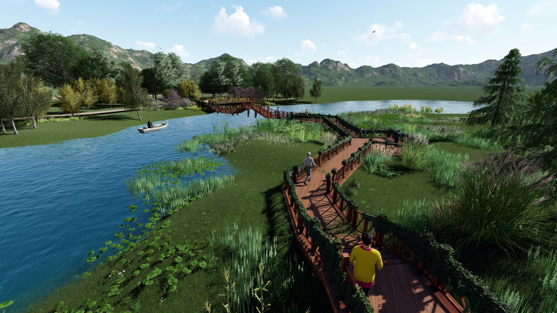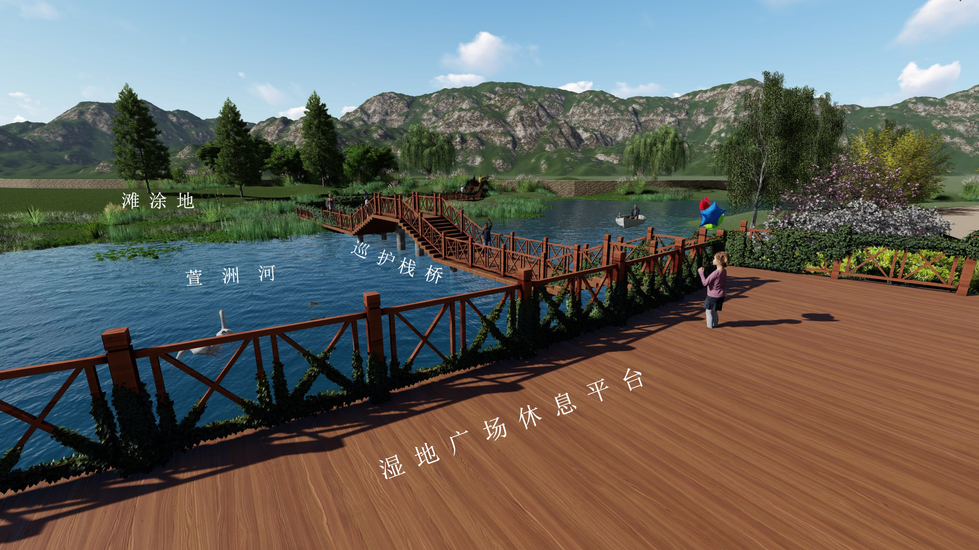 以"自然恢複為主,人工措施為輔"為規劃理念,二期工程以巡護棧道棧橋為主要內容,增加人與自然互動共融的機會,提高濕地公園內部各區域的連接性,,提供便民的景觀廊道。同時,對濕地進行保護保育、生態修複、科普宣教及合理利用等工程的規劃建設,推動區域生態建設;將其建設成為生態係統健康、自然景觀優美、宣教設施完善、文化底蘊深厚的濕地廣場,最終實現人與自然的和諧共融;確立整體和局部的關係,以點帶麵,通過濕地廣場的生態示範建設、生態旅遊創新的運行模式,帶動本地社會經濟的整體和諧發展。
