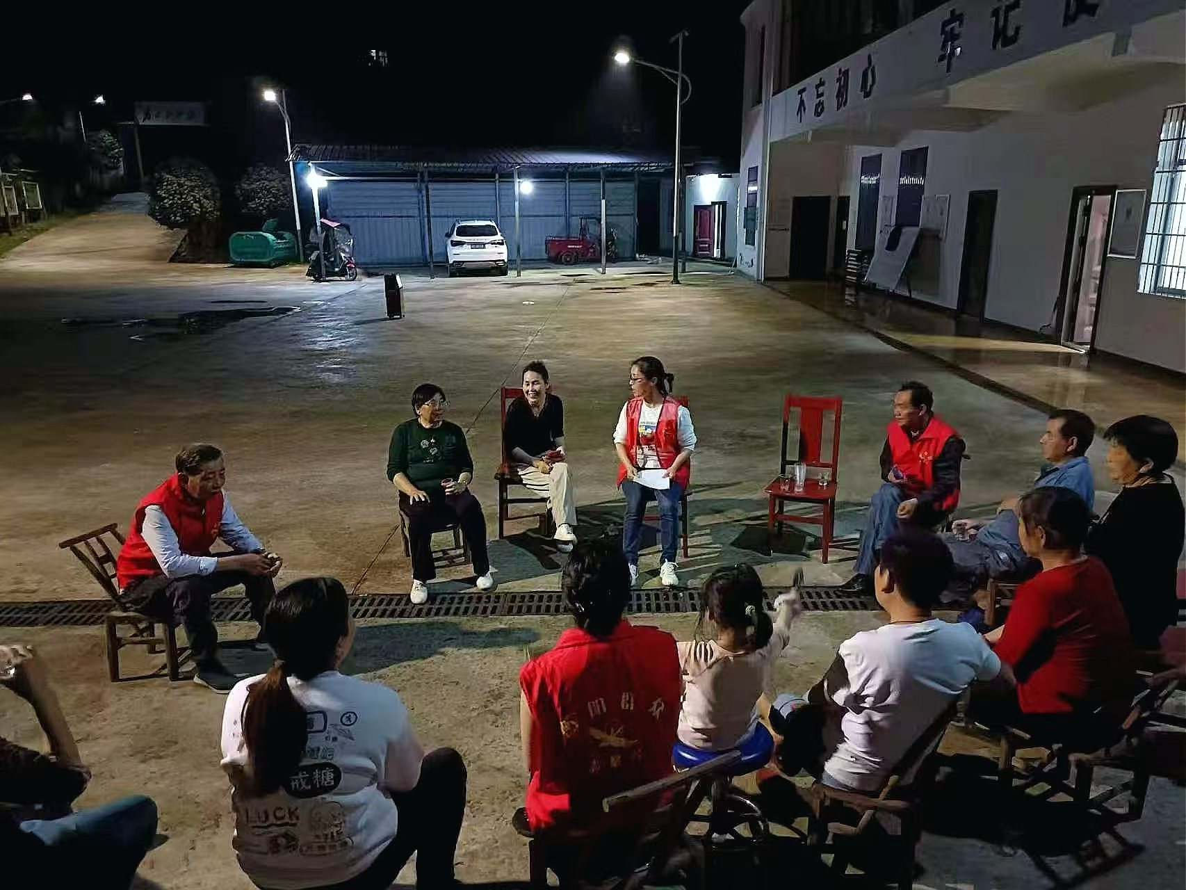 衡山縣店門鎮人大代表夜晚開會,安排部署環湖自行車賽誌願者服務工作。