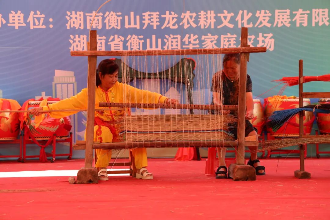 活動高潮出現在午間的農耕文化秀環節。舞台化身田間地頭,非遺傳承人現場展示“扮禾收割”“古老席草編織”“打草鞋”“吊麻筋”“紡麻線”等瀕危傳統技藝,觀眾可近距離觀看匠人指尖翻飛的精妙手法。