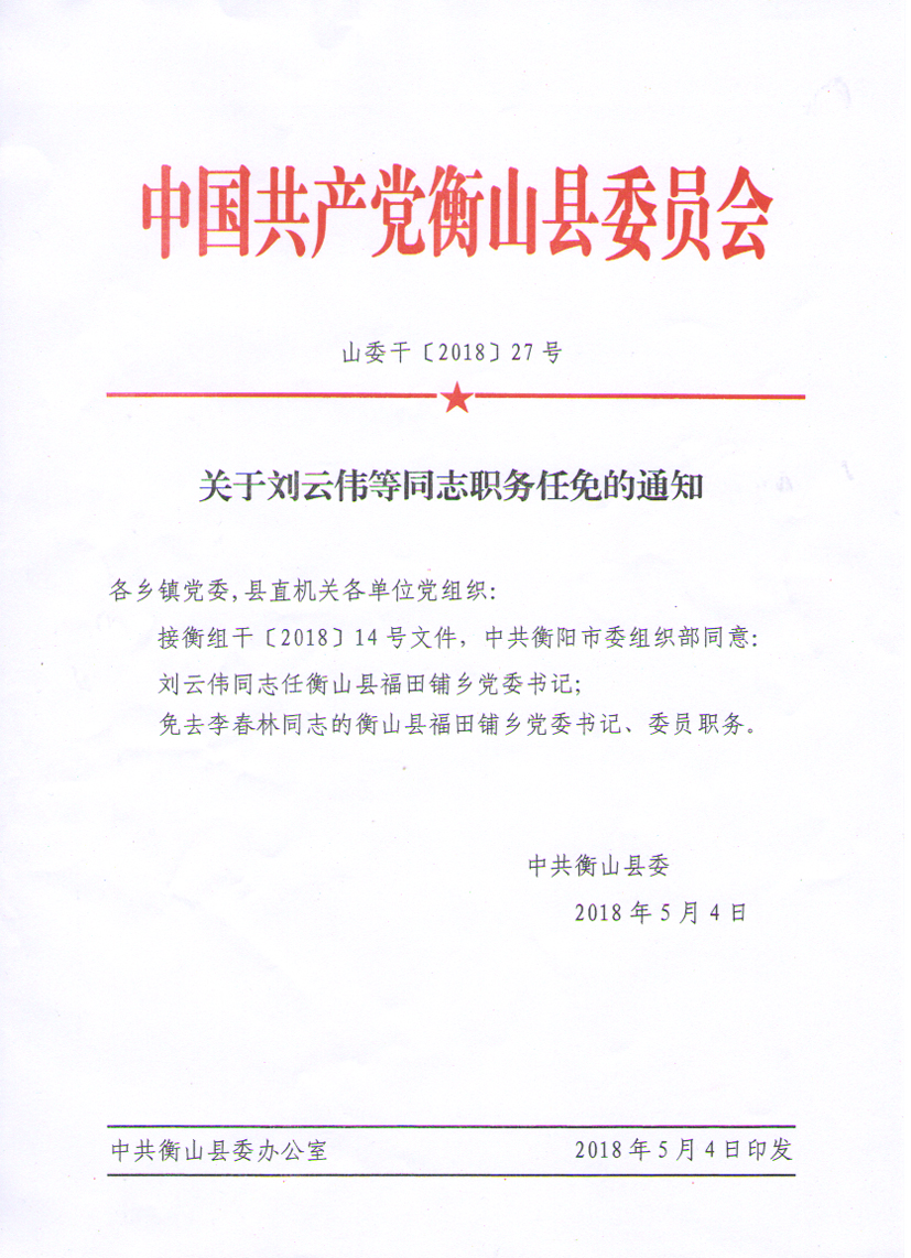 山委幹〔2018〕27號關於劉雲偉等同誌職務任免的通知