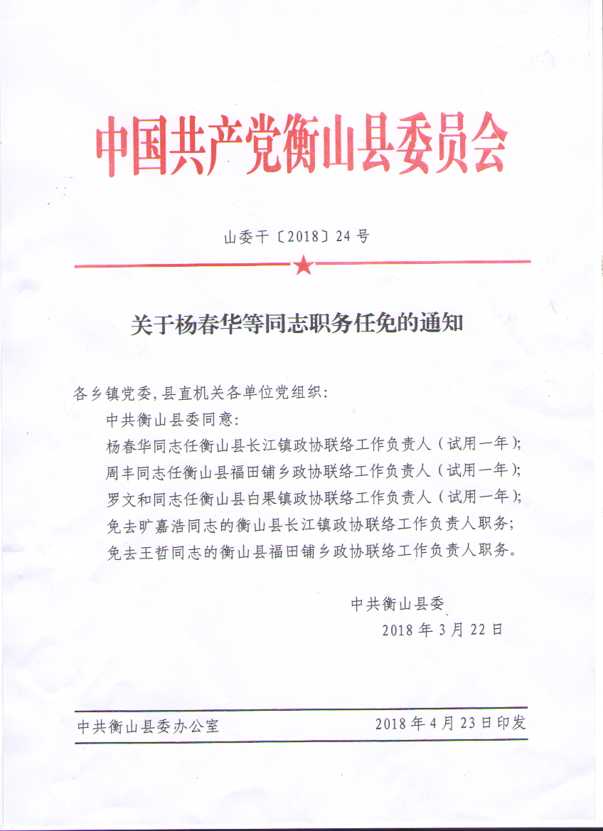 山委幹〔2018〕24號 關於楊春華等同誌職務任免的通知