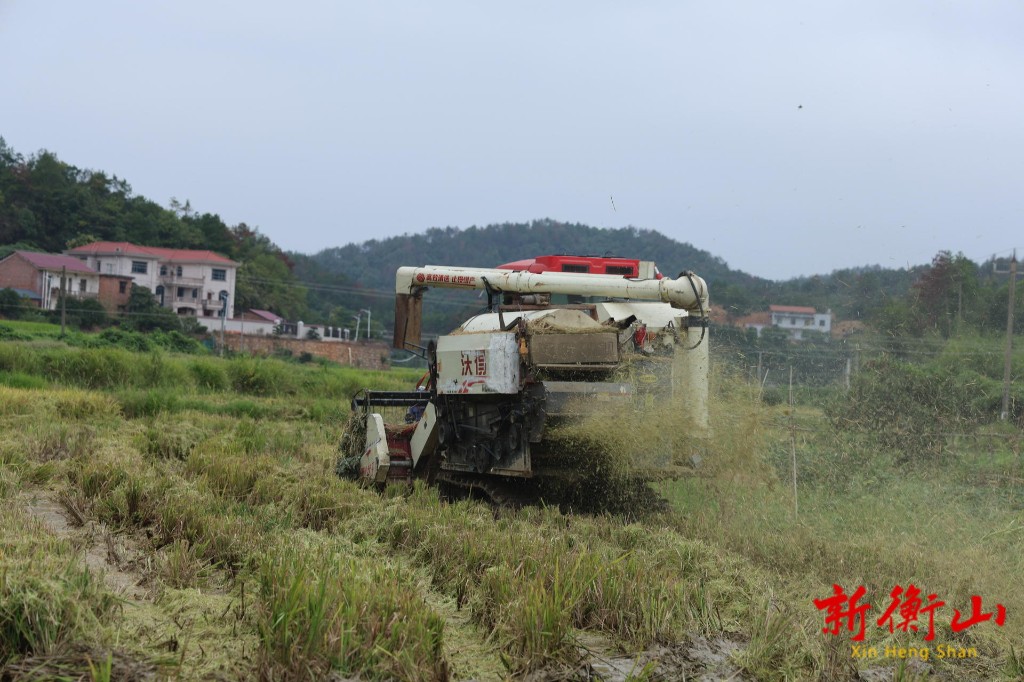 在衡山縣永和鄉龍鳳村中,農機手駕駛著收割機在田裏慢慢前進,一片片稻穀被整齊地收起。伴隨著機器的轟鳴聲,原本長在田間的秸稈被快速打碎成粉末狀。