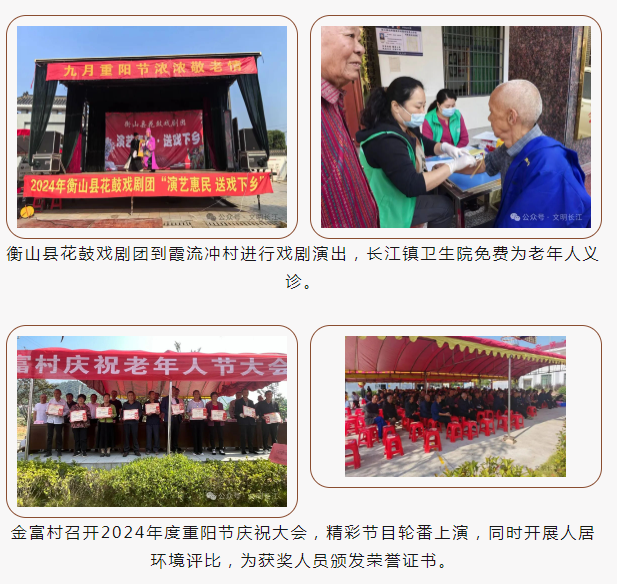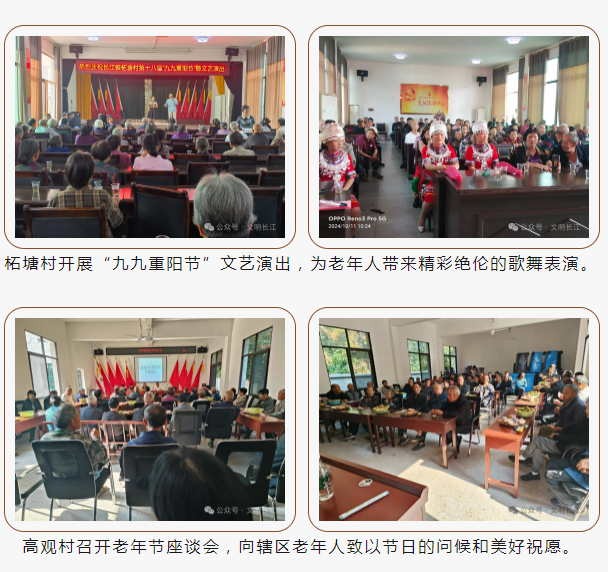 丹桂飄香,金秋十月。10月10日至11日,長江鎮黨委、各村(社區)開展了形式多樣的重陽節活動,弘揚了中華民族優秀傳統文化和尊老愛老敬老的優秀傳統美德,傳遞了“孝老愛親傳美德”的正能量,在全鎮營造“尊老、愛老、敬老、助老”的濃厚氛圍。