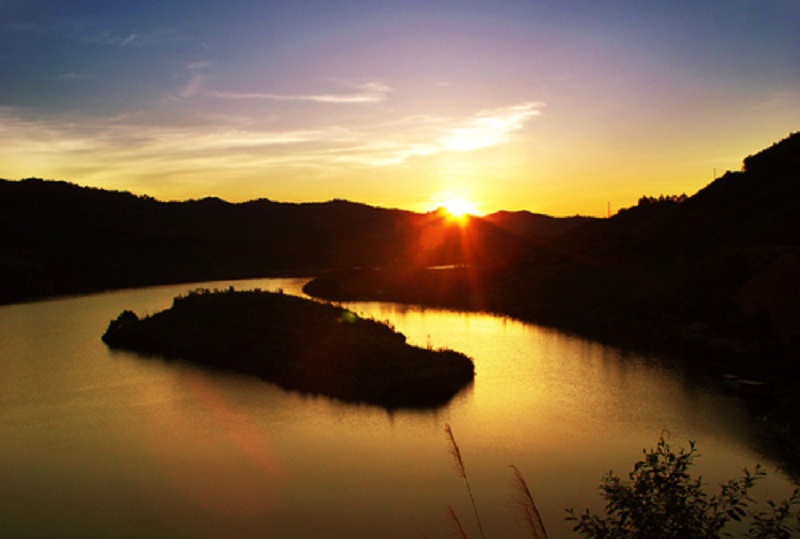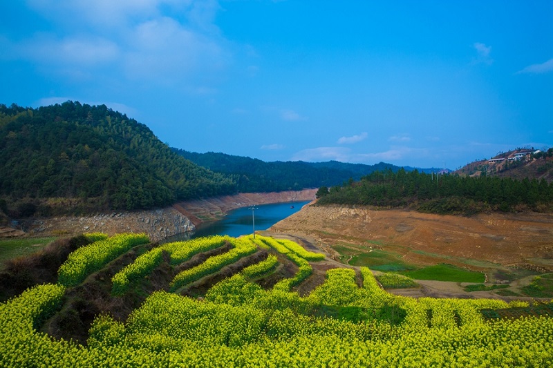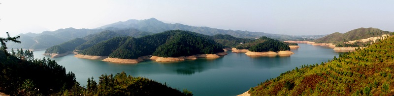 發祥地為南嶽七十二峰之一的岣嶁峰,座落在縣店門鎮天鵝村,攔截湘江支流白露港而成。1973年10月動工,曆時11年,1984年竣工,總投資2921.44萬元。水庫集雨麵積35.8平方公裏,外引3.7平方公裏,正常庫容2880萬立方米,最大防洪庫容3370萬立方米。樞紐工程由主壩、4座副壩及溢洪道、施工導流涵、灌溉發電涵、放水塔、壩後電站和管理所組成。壩後電站裝機4台,容量750kw,年發電量67萬kmh。水庫建幹渠3條共59.66km;引水渠1條4.25km;支渠17條130.36km;渡槽134處,總長15415m。水庫灌區包括店門、萱洲、 賀家、永和、沙泉、開雲、長江7 個鄉鎮及南嶽區南嶽鎮和衡陽縣裏仁鄉,設計灌溉麵積8.13萬畝。1975年6 月關閘蓄水,次年受益,穩定灌溉麵積約7萬畝。壩址距107國道0.6公裏,距南嶽旅遊勝地15公裏,距衡陽市城區、衡山縣城均為30公裏,距正在規劃之中的衡山新城22公裏。2007年九觀橋水庫依靠國家投資完成了大壩除險加固,2009年被水利部授予“國家級水利風景區”。