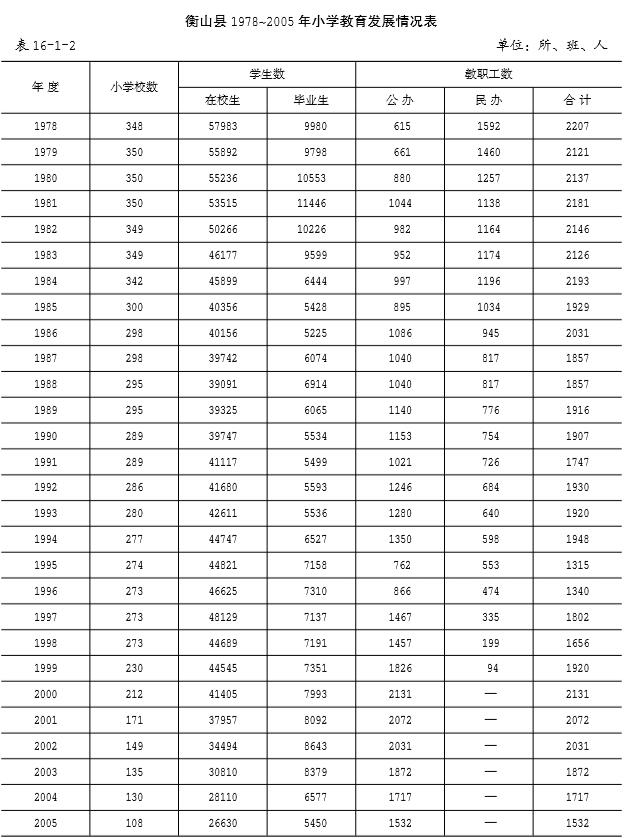 1978-2005幼兒、小學、中學教育情況