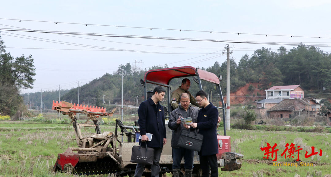(衡山農商銀行工作人員深入田間地頭實地講解政策 劉星語 攝)