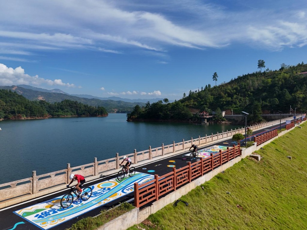 在九觀湖,衡山投資3500萬元對環湖公路進行修複提質、路域環境美化,舉辦了2024湖南·衡山九觀湖環湖自行車賽暨鄉村旅遊推介活動,數千名運動員、觀眾在這裏體驗自然之美,享受健康生活;