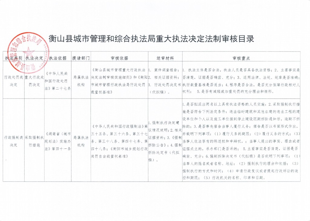 衡山縣城市管理和綜合執法局重大執法決定法製審核目錄