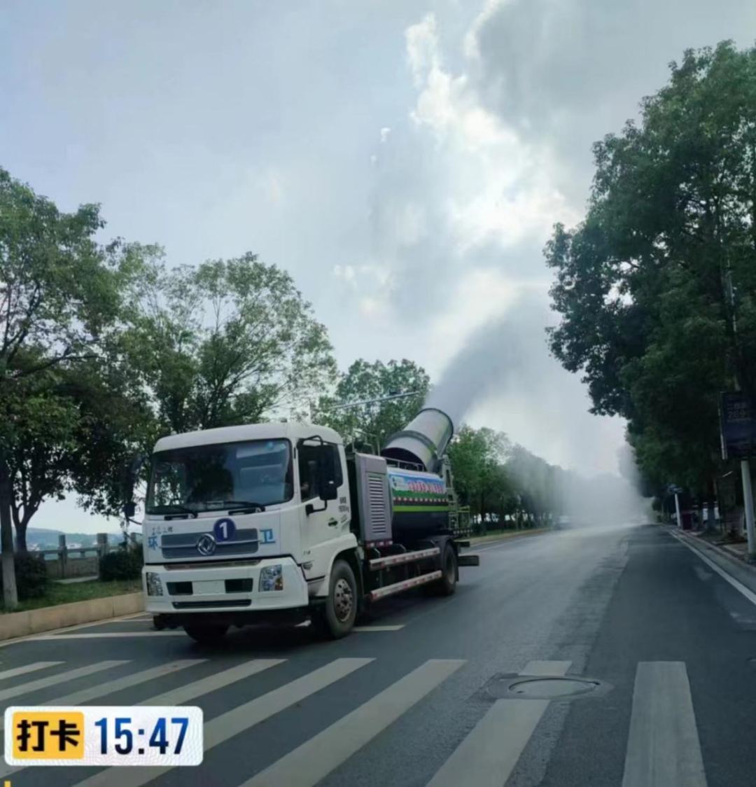 加強道路揚塵汙染治理,對城區各主次幹道、建築工地周邊汙染路麵進行精細化整治,各主次幹道每天三次灑水衝洗,抑塵車全天候噴霧作業,有效抑製道路揚塵汙染,促進整體環境衛生的提升。