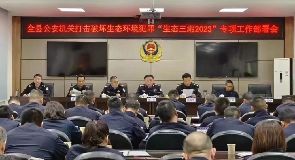 工作部署會強調,要提高思想認識。“生態三湘2023”專項行動是省公安廳黨委貫徹落實習近平生態文明思想、著眼我省當前生態環境領域突出問題作出的一項重要部署,要高度重視,切實增強使命感、責任感、緊迫感,確保“生態三湘2023”專項工作取得實效。要狠抓工作落實。加強組織領導,結合實際,精心謀劃,製定細化方案,進行專題部署,全力以赴抓行動推進、抓工作措施落實、抓重點問題解決。認真梳理工作中存在的問題和薄弱環節,有針對性地製定整改措施,實現爭先創優。要嚴格依法辦案。堅持穩中求進工作總基調,堅持“五穩五進”工作總原則,堅持嚴打嚴治、寬嚴相濟的形勢政策,努力實現法律效果與社會效果有機統一。堅決杜絕與民爭利的違法違規行為,嚴格依法查封、扣押凍結涉案財物,規範涉案財物保管與處理。要強化信息報送。各派出所要明確專人負責信息報送工作,認真梳理總結本所工作情況,加強與縣局領導小組辦公室的溝通聯係,每周報送專項行動戰果清單,每月報送工作小結,切實做到信息互通。