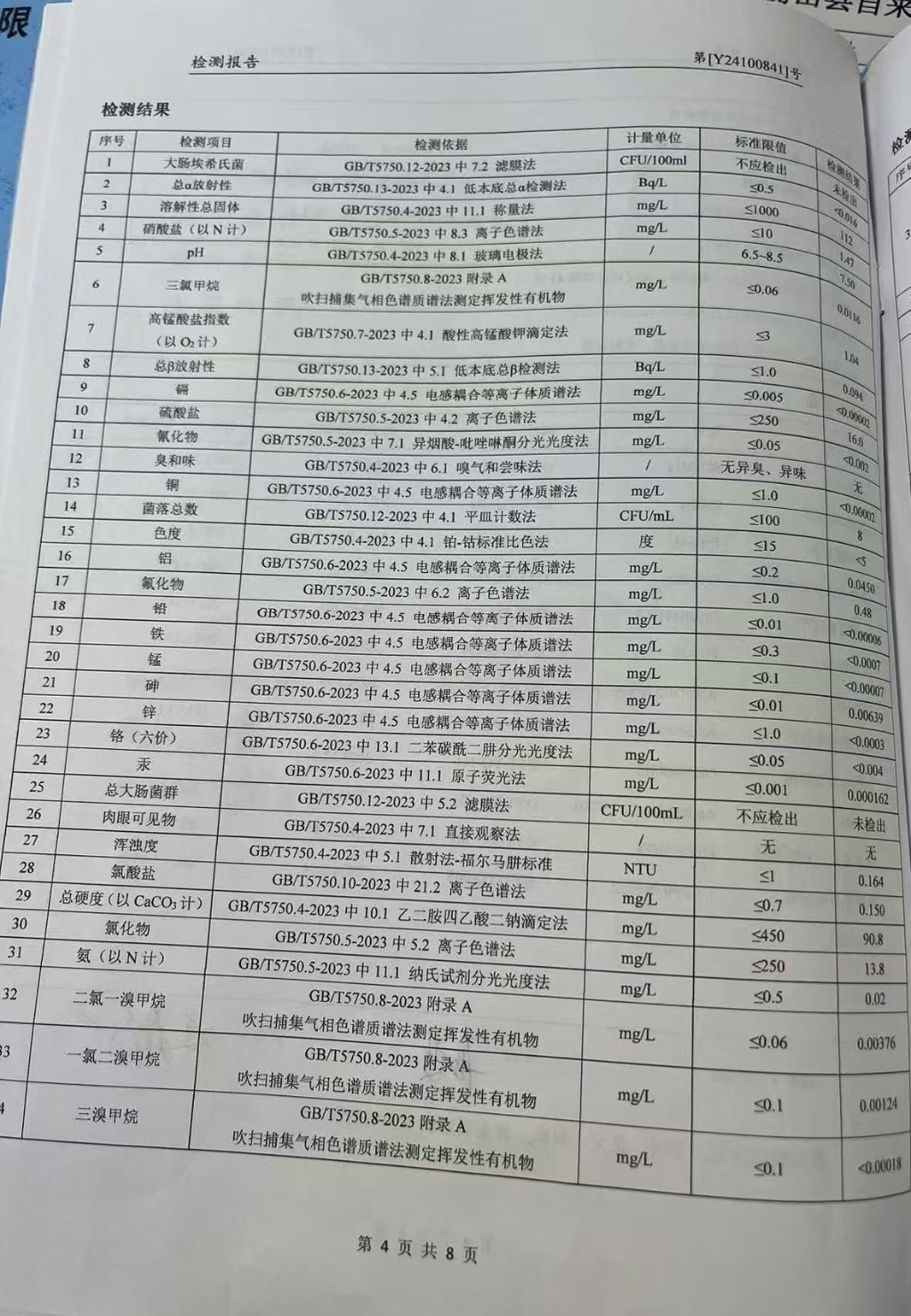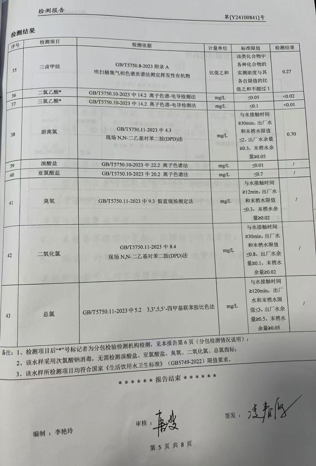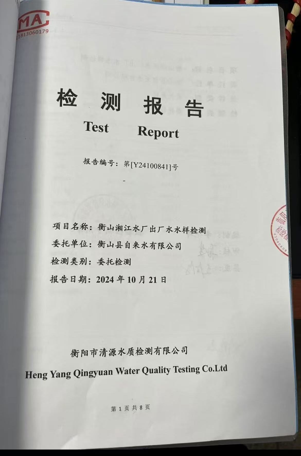 提高服務質量、保障供水安全(2024年10月水質檢測報告)
