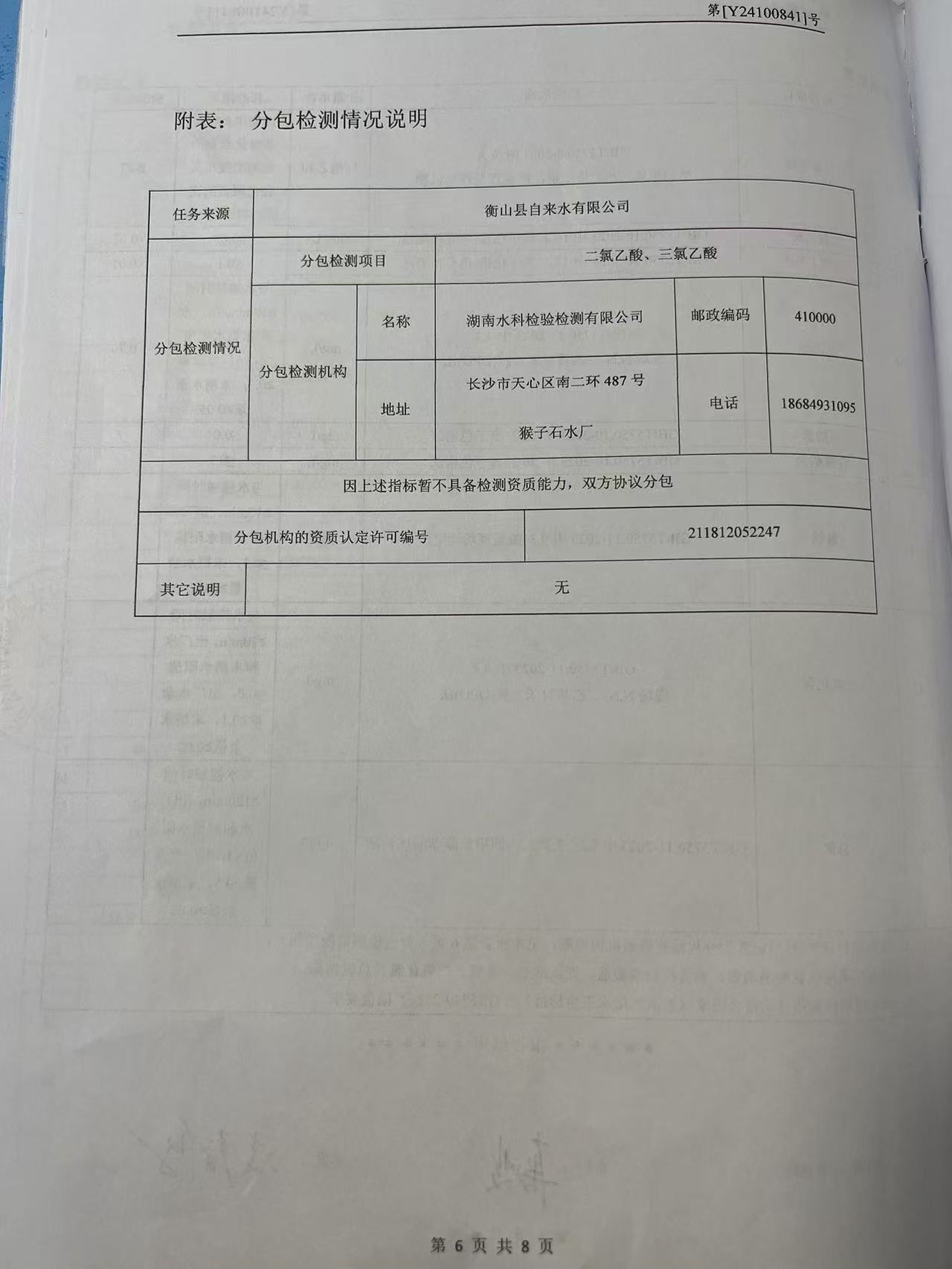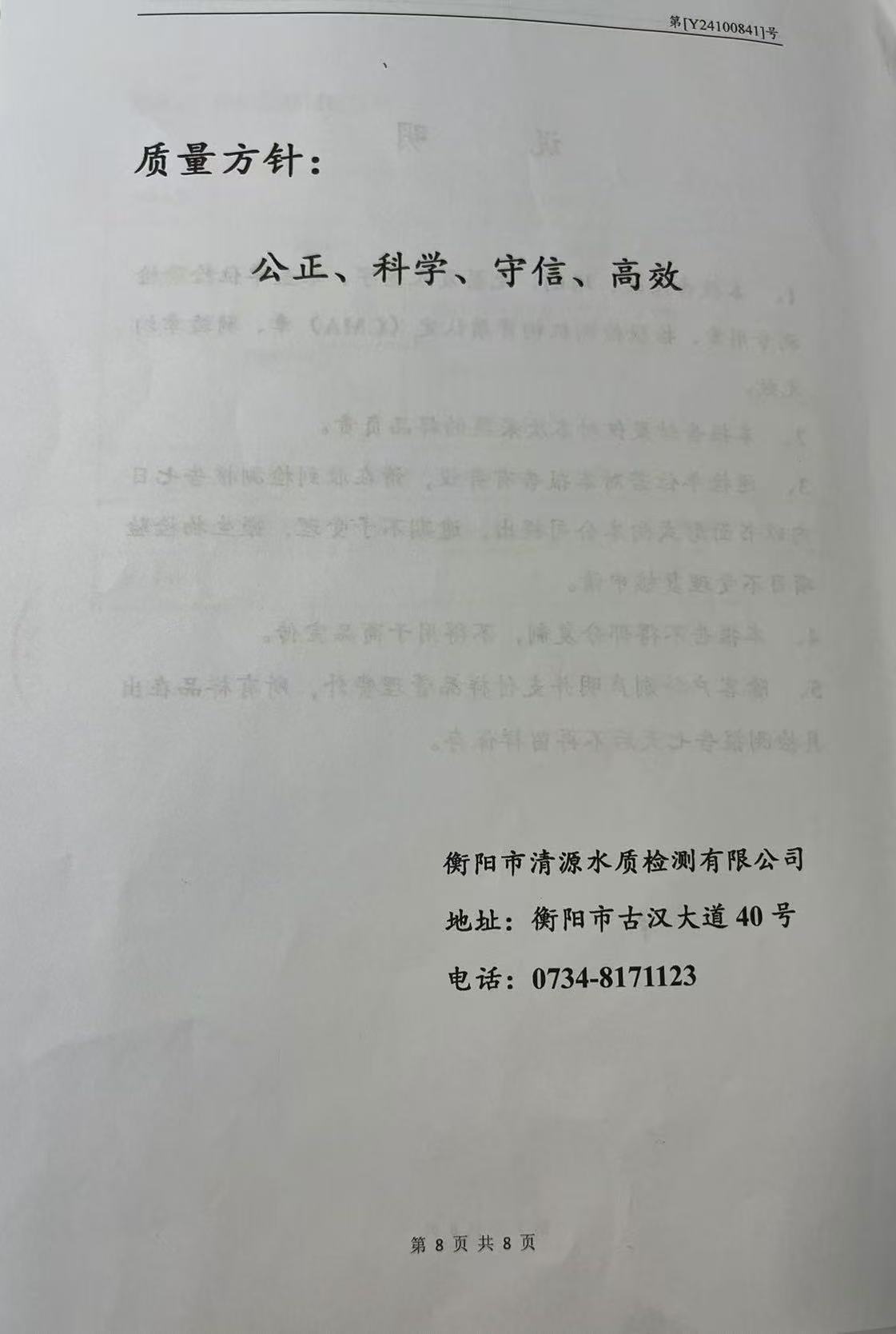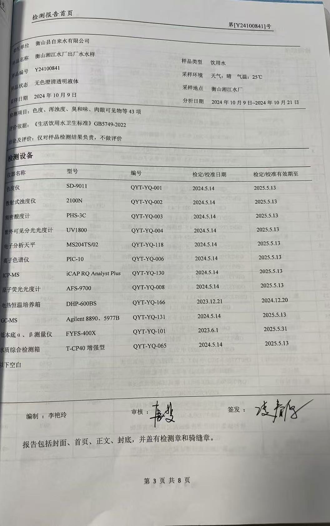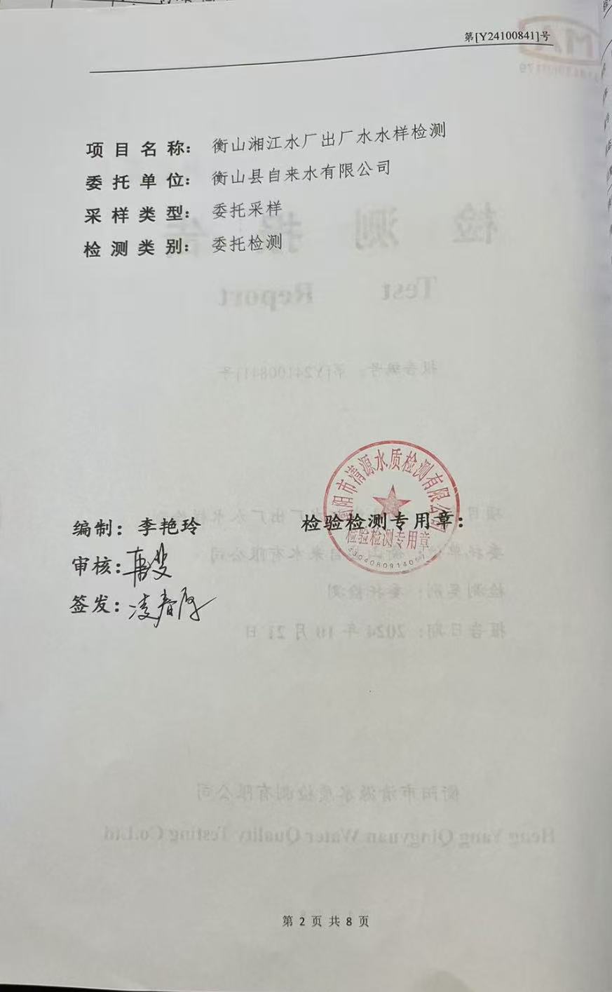 提高服務質量、保障供水安全(2024年10月水質檢測報告)
