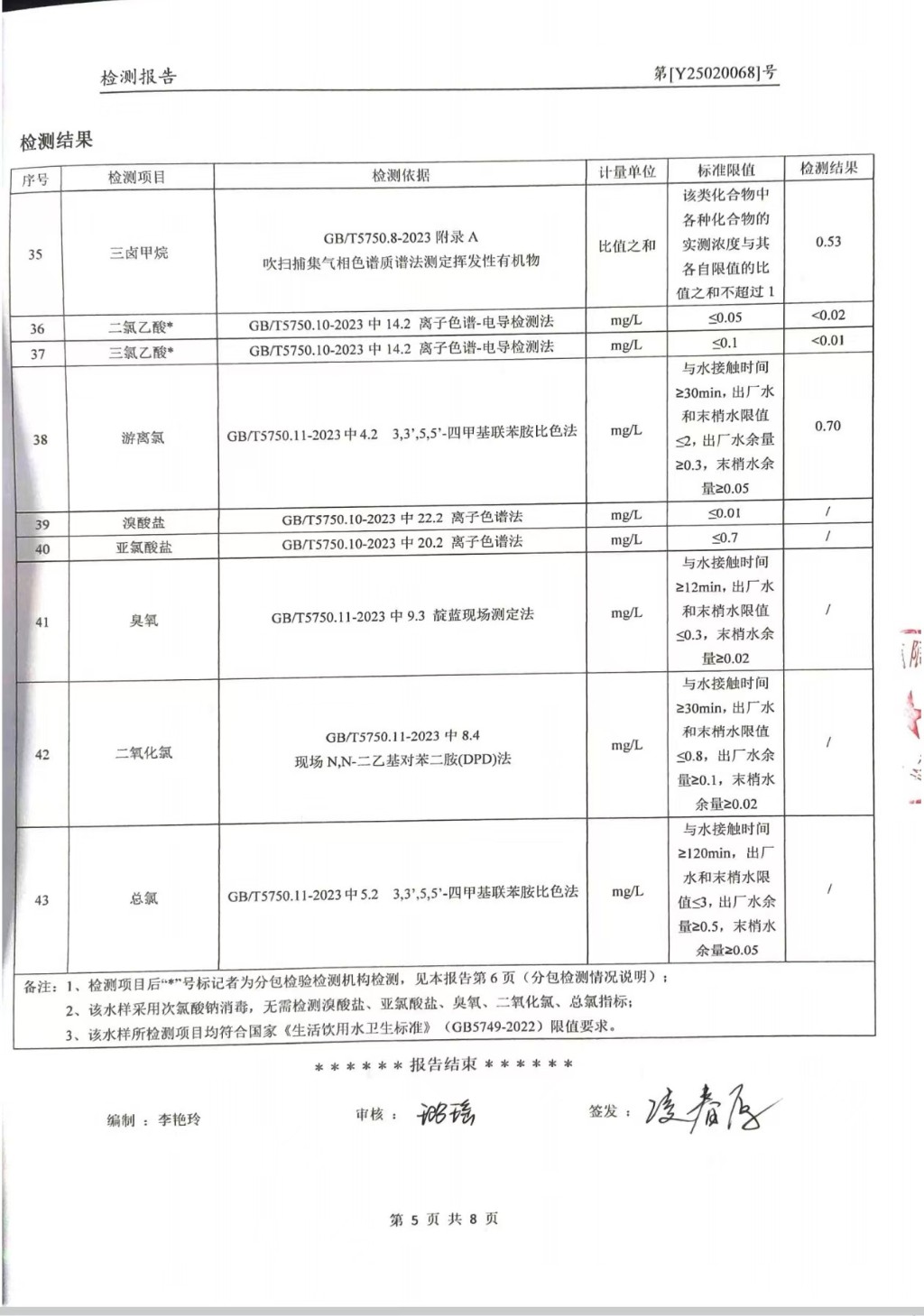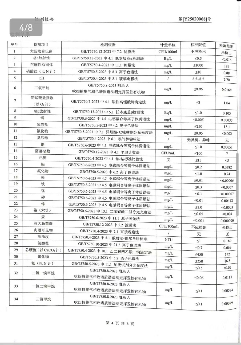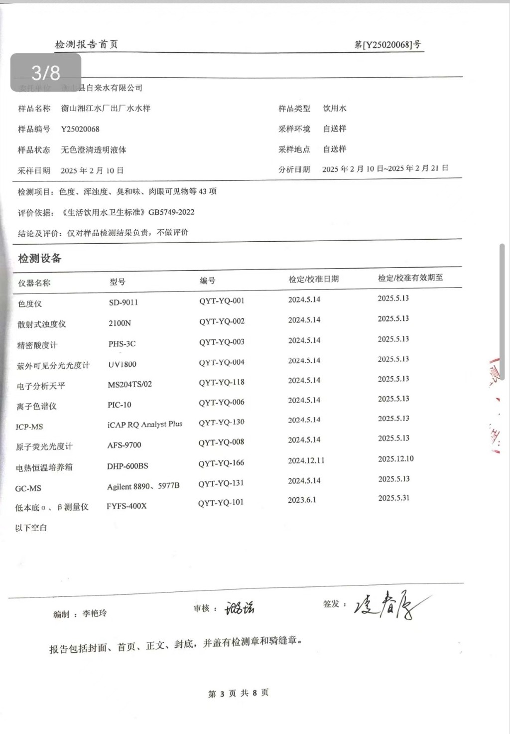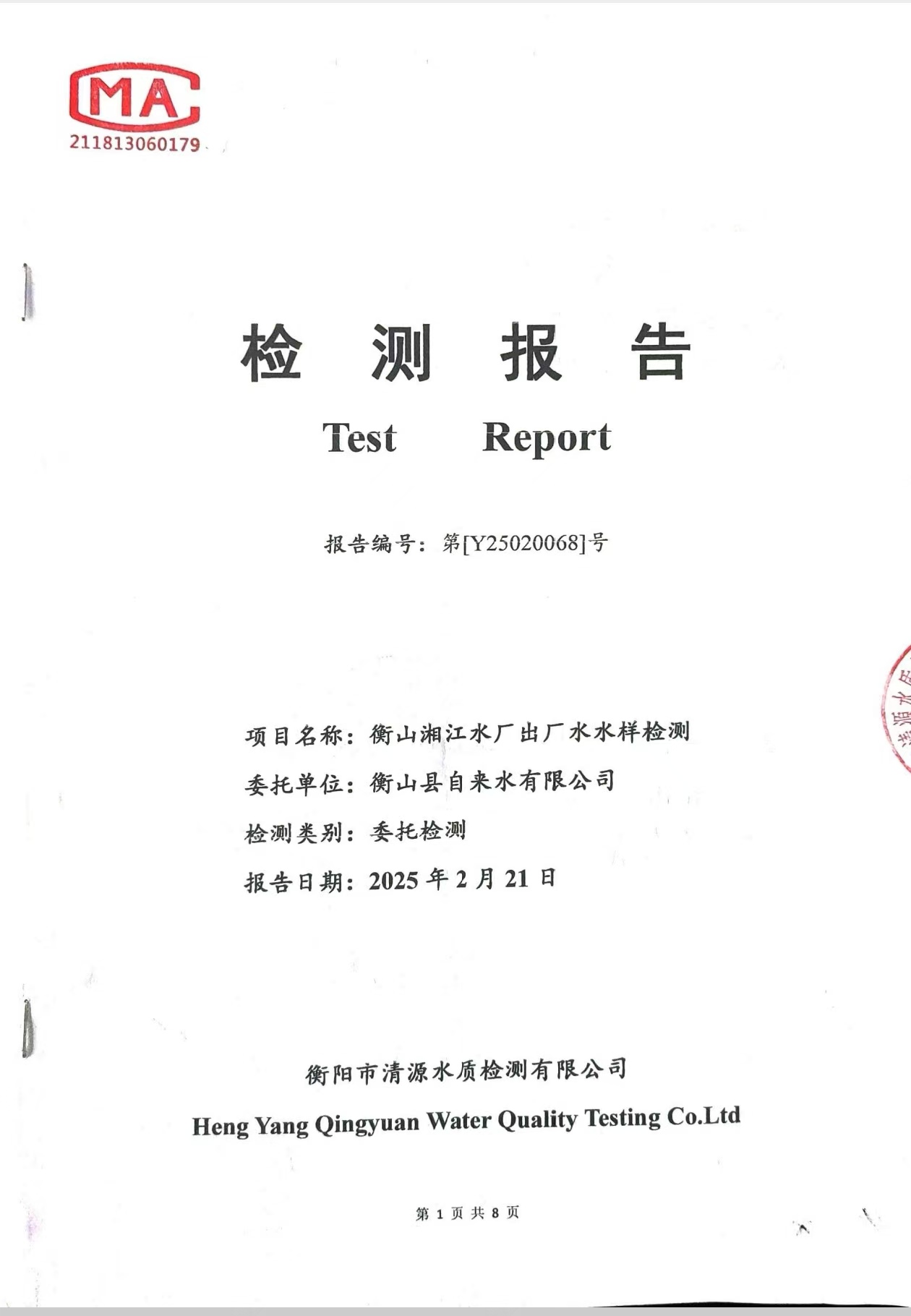 提高服務質量、保障供水安全(2025年2月水質檢測報告)