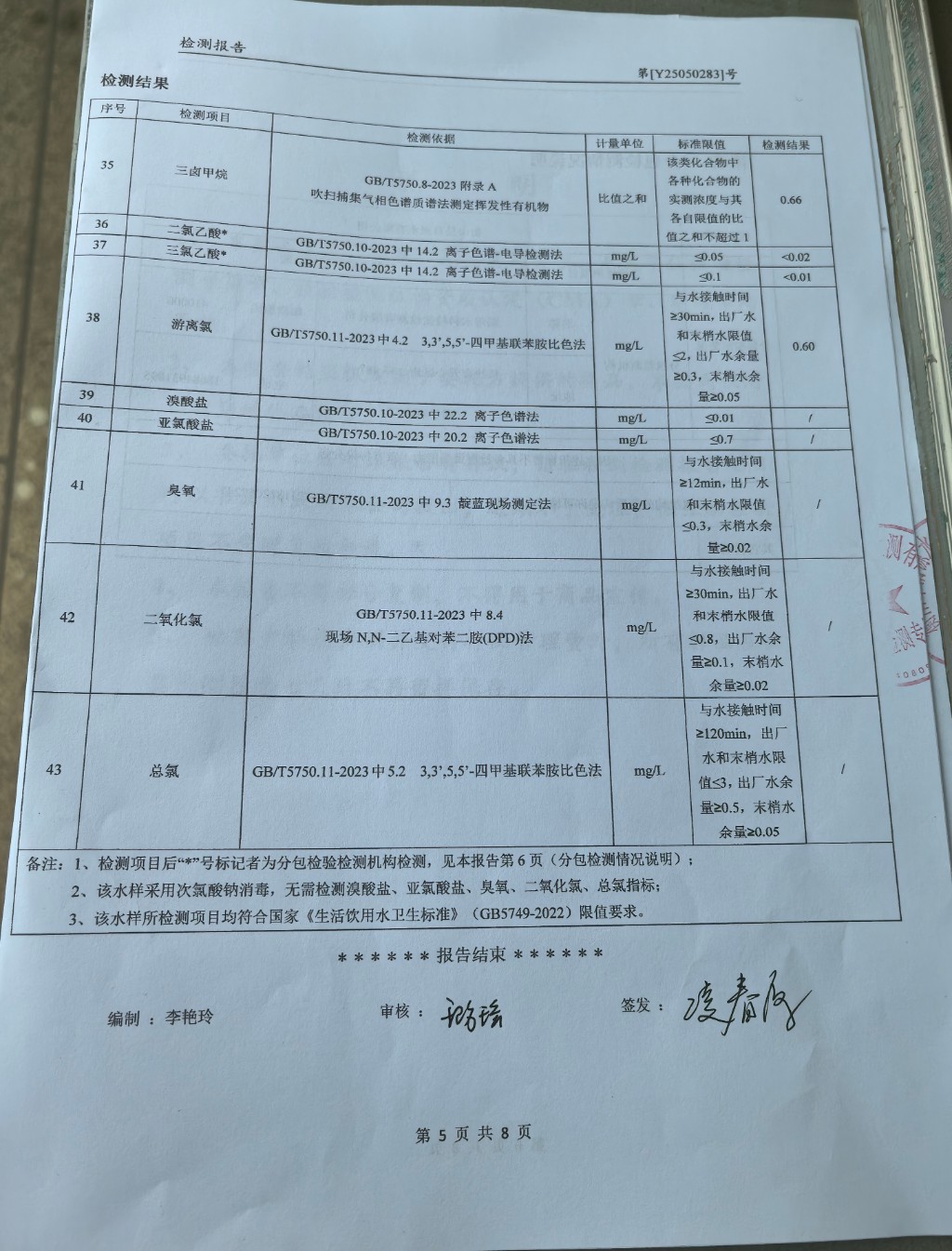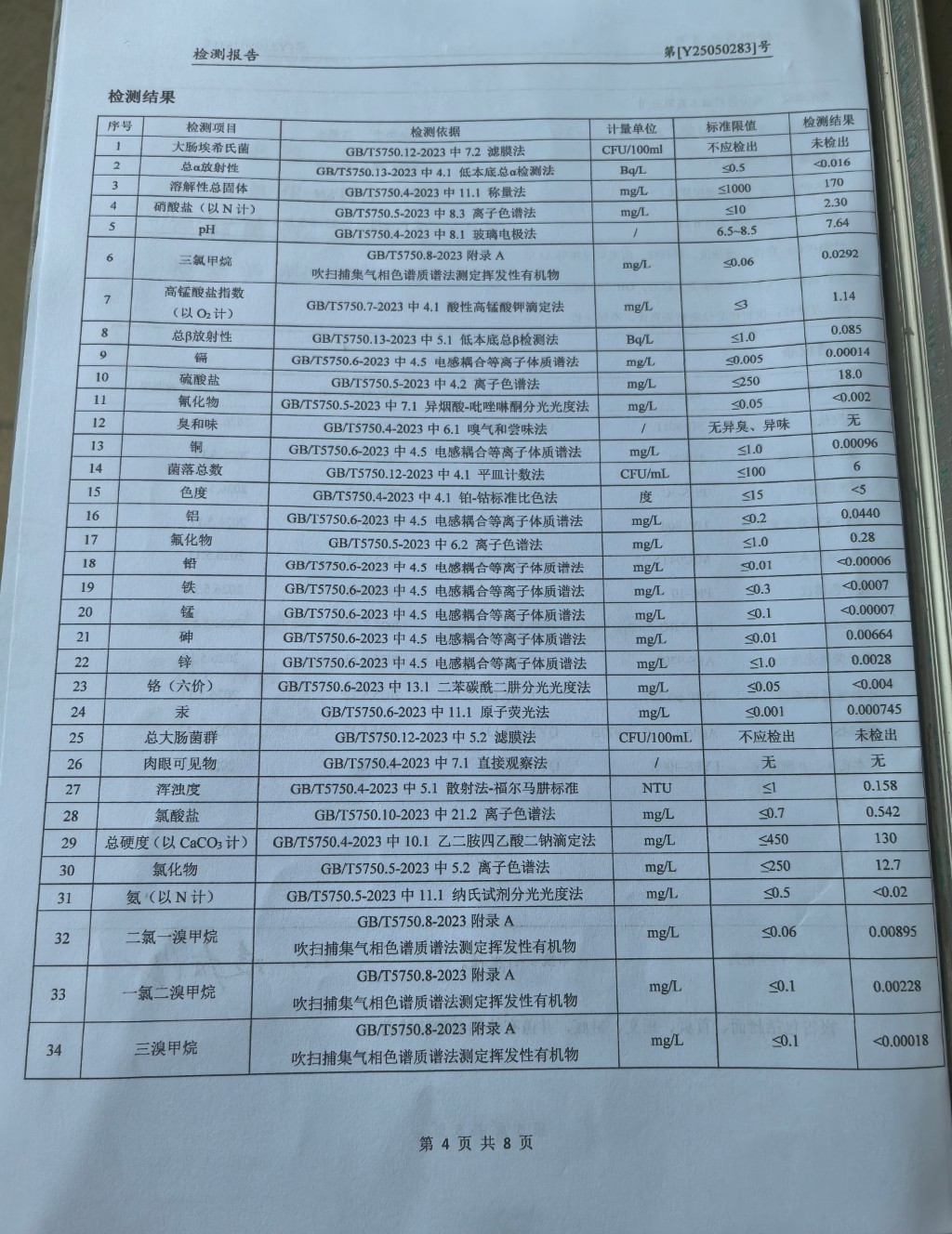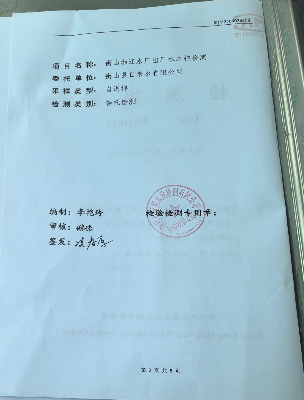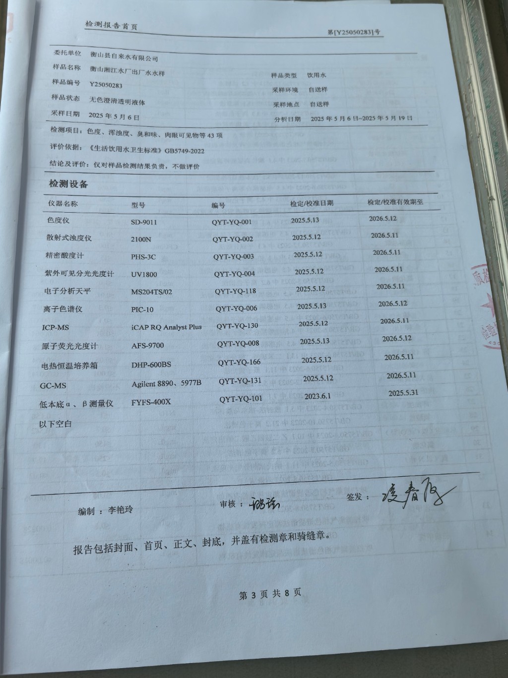 提高服務質量、保障供水安全(2025年5月水質檢測報告)