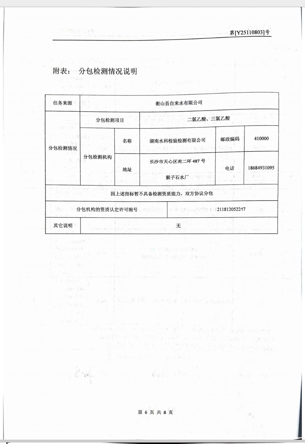 提高服務質量、保障供水安全(2025年11月水質檢測報告)