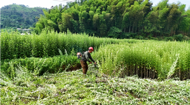 東湖鎮團山村艾草種植基地收割艾草(王南方 攝)