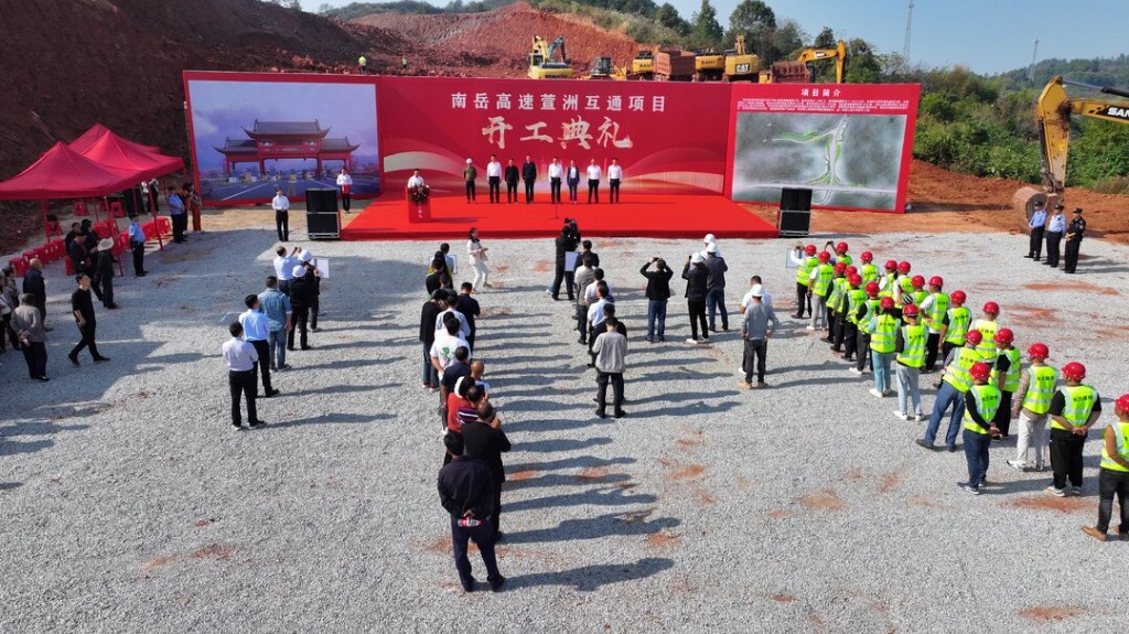 10月24日,南嶽高速萱洲互通項目舉行開工典禮。縣委副書記、縣長段曉賽宣布項目正式開工,市交通局黨組副書記、副局長戴詩庭致辭。
